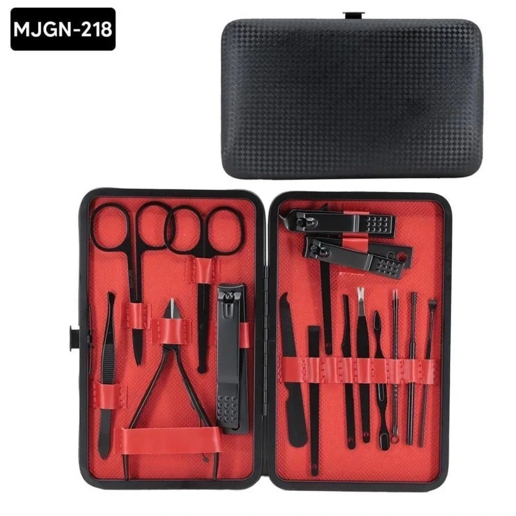 1 büyük tırnak makası1 küçük tırnak makası1 sivri uç tırnak makası ( Tırnaklara şekil vermek için )1 çift uçlu komedon1 törpü1 et ittirici1 çift taraflı tırnak kaldırma aleti1 makas1 pedikür bıçağı ( ayak tabanları için )1 çarpraz pedikür bıçağı ( ayak tabakları için )1 kavisli pedikür bıçağı ( ayak tabanları için )1 V şeklinde et itme ( Tırnak çevresinde ki ölü deriyi temizleme )1 itme çubuğu ( Tırnak içinde ki ve çevresinde ki kirleri temizler )1 tırnak temizleme 1 cımbız1 iğneli komedon1 kulak temizleme