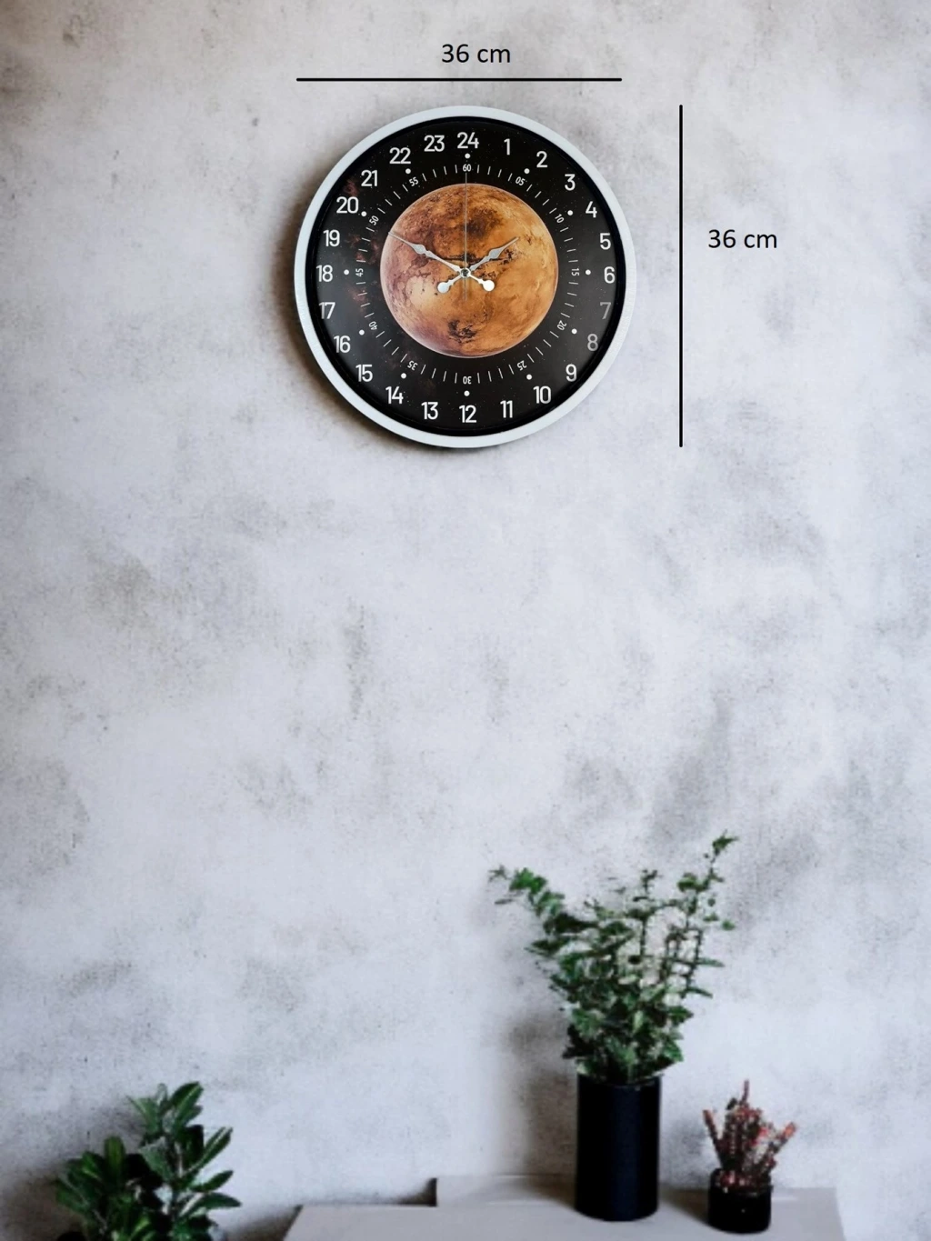 Klasik saat anlayışının dışına çıkan 24 saat göstergeli kadranı ile bu duvar saati, zamana farklı bir bakış kazandırır. Standart 12 saatlik sistemden farklı olarak günün tamamını tek bir kadranda sunar ve bu özelliğiyle diğer duvar saatlerinden net şekilde ayrılır.