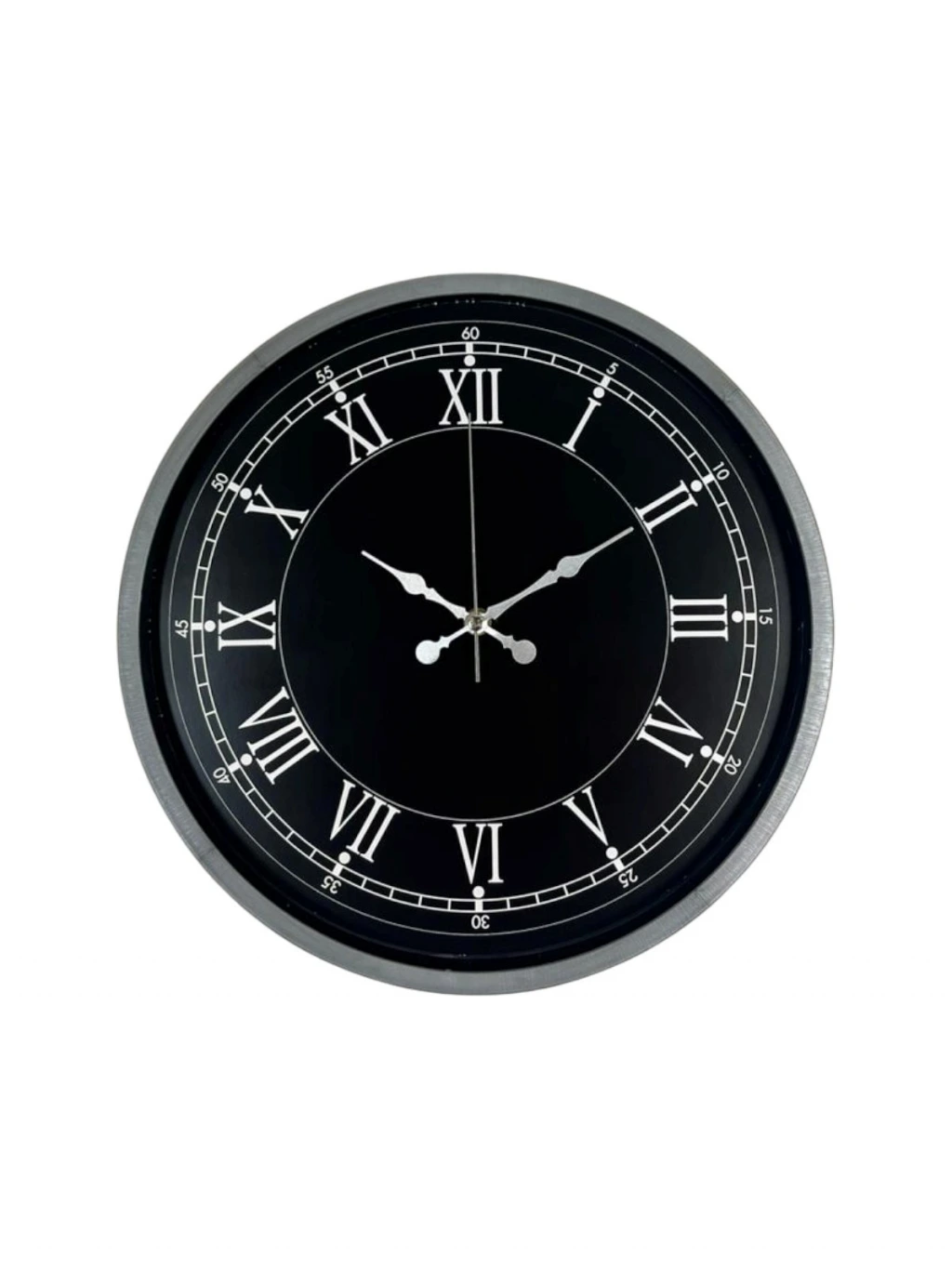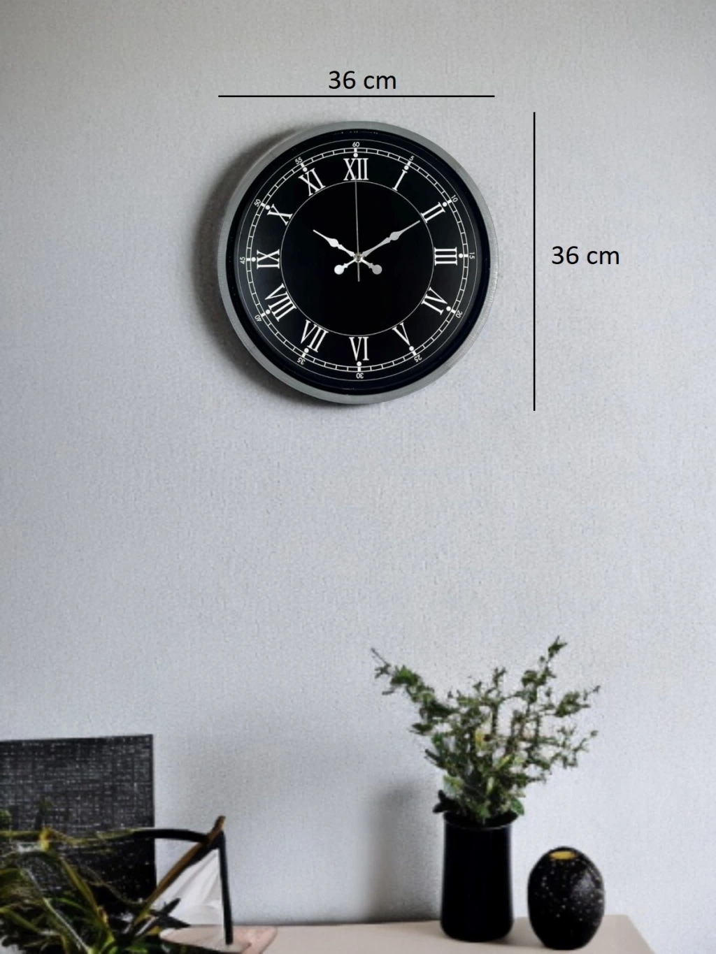 Klasik Roma rakamları, siyah kadranı ve gri çerçevesiyle tasarlanan bu 36 cm duvar saati; zamansız bir şıklık sunar. Net ve dengeli kadran yapısı sayesinde kolay okunur, dekorasyona güçlü bir karakter katar.