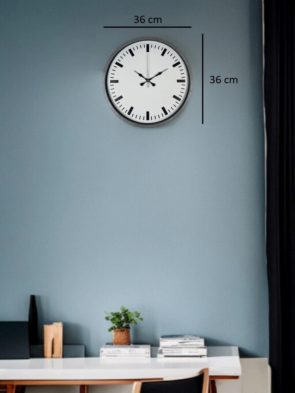 Beyaz kadranı, siyah indeksleri ve gri çerçevesiyle tasarlanan bu 36 cm duvar saati; sade, modern ve zamansız bir görünüm sunar. Minimal kadran yapısı sayesinde gözü yormaz, her açıdan net okunabilirlik sağlar.