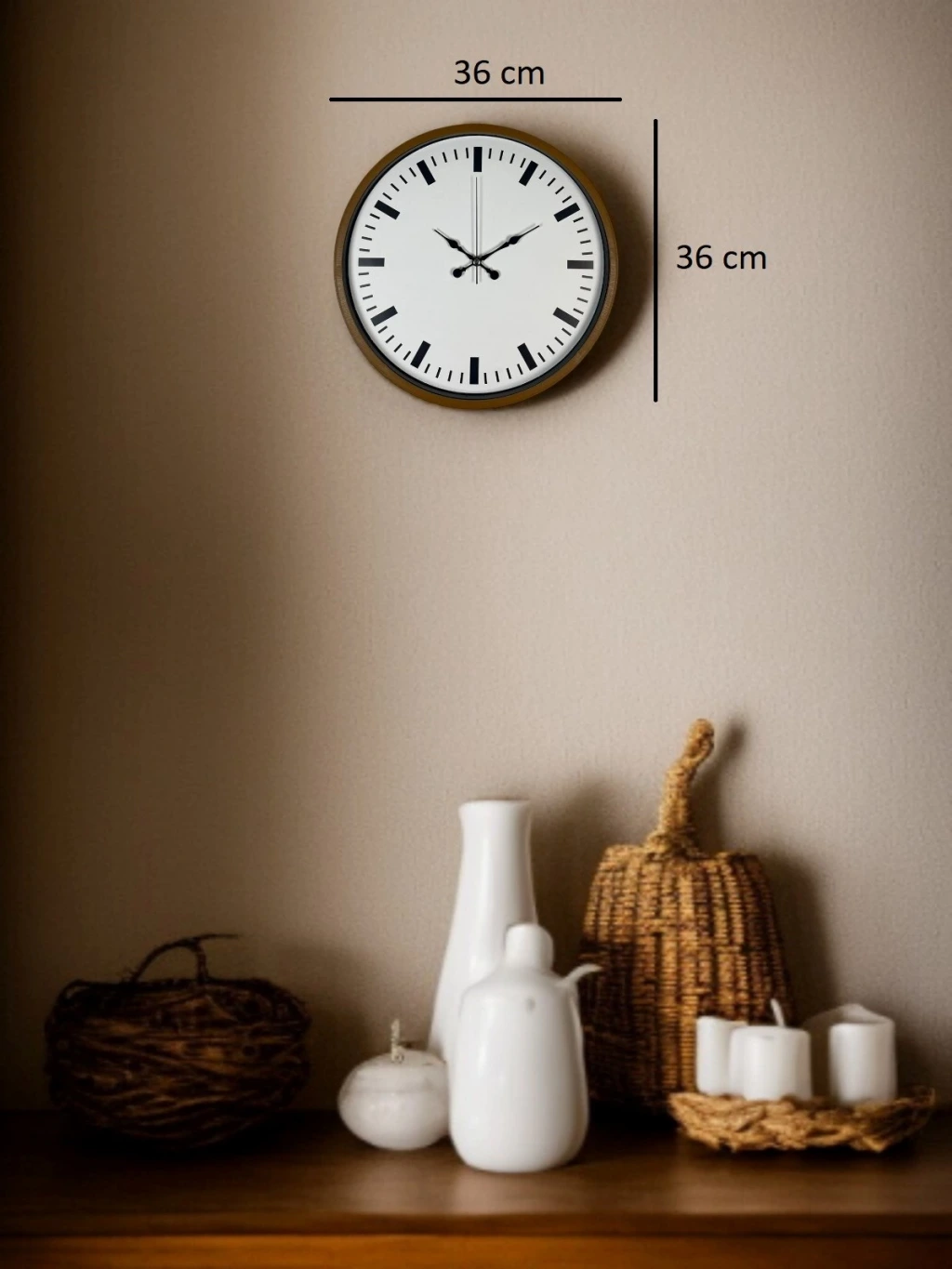 36 cm çapı ile duvarda dengeli bir duruş sergileyen bu duvar saati; salon, mutfak, koridor ve ofis gibi alanlarda hem dekoratif hem de işlevsel bir tamamlayıcıdır.