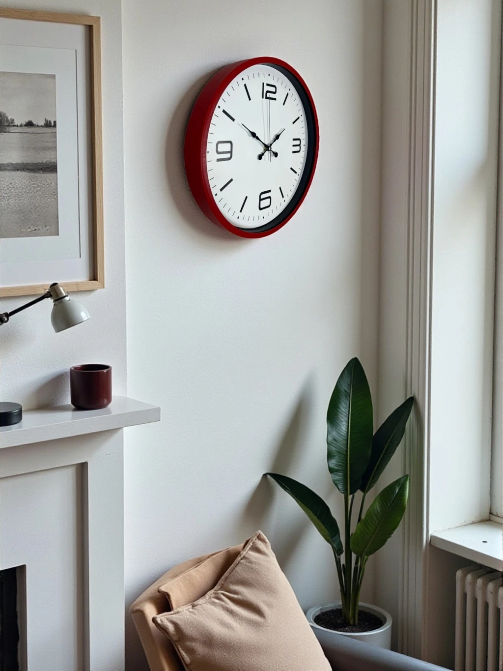 Dayanıklı plastik çerçevesi hafif ve sağlamdır, bu sayede montajı kolaydır. Kırmızı çerçevenin enerjik ve modern duruşu, saati sadece bir zaman gösterici olmaktan çıkarıp şık bir dekor ürününe dönüştürür.