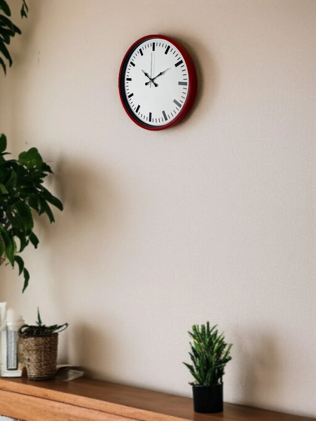 Canlı kırmızı çerçevesi ve sade beyaz kadranı ile tasarlanan bu 36 cm duvar saati, bulunduğu ortama enerjik ve dikkat çekici bir hava katar. Siyah çizgisel indeksleri ve zarif akrep-yelkovan yapısı sayesinde saatin okunabilirliği oldukça yüksektir. Modern ve sade tasarımıyla hem ev hem de ofis dekorasyonlarında güçlü bir tamamlayıcı olarak öne çıkar.