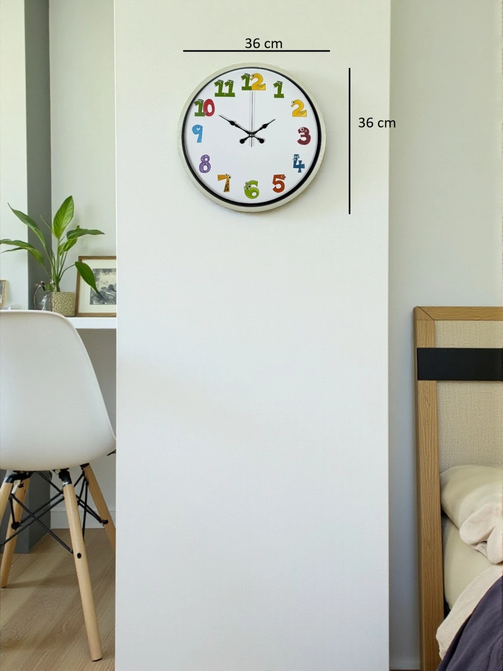 Renkli ve eğlenceli rakam tasarımlarıyla çocuk odalarına neşe katan bu 36 cm duvar saati, sessiz çalışması ve canlı görünümüyle hem dekoratif hem öğretici bir üründür. Çocukların saat öğrenmesini kolaylaştıran sevimli rakam karakterleri ile odalara enerji katar.