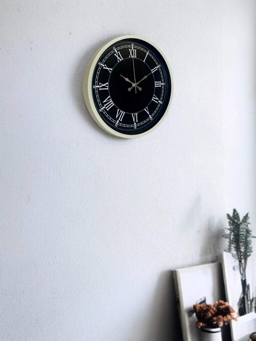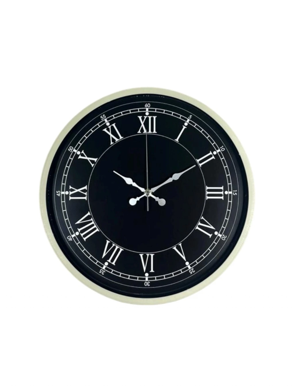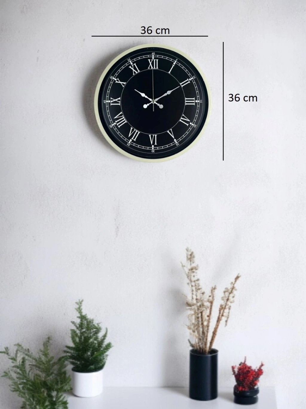 Krem renkli çerçevesi ve siyah zemin üzerindeki Roma rakamlı kadran tasarımıyla öne çıkan bu 36 cm duvar saati; zamansız bir şıklık sunar. Klasik saat estetiğini modern çizgilerle buluşturan tasarımı sayesinde salon, oturma odası ve ofis gibi alanlarda güçlü ve asil bir duruş sergiler. İnce dakika göstergeleri ve dengeli kadran yapısı, zamanı net ve rahat bir şekilde okumayı sağlar.
