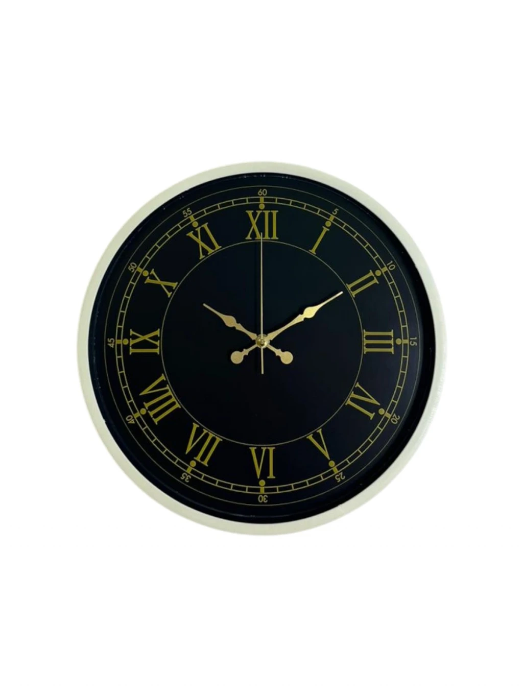 Krem renkli çerçevesi, siyah kadranı ve gold tonlu Roma rakamları ile tasarlanan bu 36 cm duvar saati; klasik dekorasyon sevenler için zamansız ve asil bir görünüm sunar. Detaylı dakika göstergeleri ve dengeli kadran yapısı sayesinde zamanı kolayca okumayı sağlar. Salon, oturma odası ve ofis gibi yaşam alanlarında dekorasyonu tamamlayan güçlü bir aksesuardır.