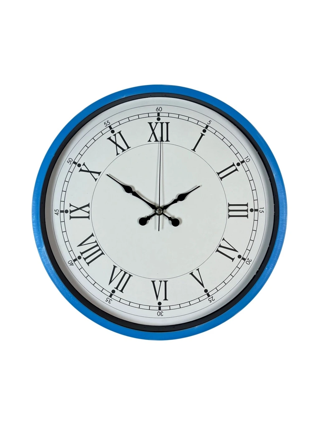 ⭐ Ürün Açıklaması Modern dekorasyonun enerjisini klasik bir zarafetle buluşturan 36 cm mavi duvar saati, yaşam alanlarınıza hem şıklık hem de tazelik katmak üzere tasarlanmıştır.; Canlı mavi çerçevesi, bulunduğu ortama modern bir renk dokunuşu eklerken, çift halkalı detaylara sahip kadranı ile diğer modellerden daha estetik ve dikkat çekici bir görünüm sunar.; Saatin ön yüzeyi 2 mm kalınlığında gerçek cam ile üretilmiştir.; Gerçek cam; plastik camlara göre çok daha dayanıklı, çizilmeye karşı dirençli ve zamanla sararmayan yapısıyla premium kalite hissi verir.; Net ve berrak bir görüntü sunarak kadran tasarımının tüm detaylarını kusursuz şekilde gösterir.; Bu özellik, ürünü hem dekoratif hem de uzun ömürlü bir tercih haline getirir.; Beyaz zemin üzerine işlenmiş siyah Roma rakamları, yüksek okunabilirlik sunarken klasik bir estetik ortaya koyar.; İnce akrep ve yelkovan tasarımı, çift halka detaylı kadran ile mükemmel uyum sağlar.; Saat mekanizması sessiz akan saniye (akar saniye) teknolojisine sahiptir.; Bu sayede çalışırken hiçbir tıkırtı sesi çıkarmaz; yatak odası, çalışma odası, ofis gibi sessizliğin önemli olduğu ortamlarda gönül rahatlığıyla kullanılabilir.; Hafif ve dayanıklı plastik gövdesi, kolay montaj imkânı sunar.; Mavi çerçevenin modern tonu, genç odalarından salonlara, mutfaklardan iş yerlerine kadar birçok dekorasyon tarzına uyum sağlar.