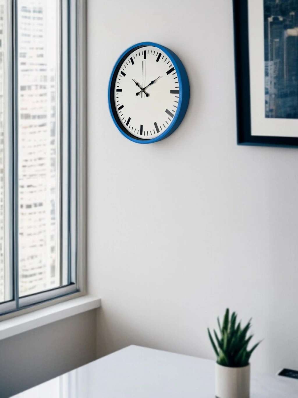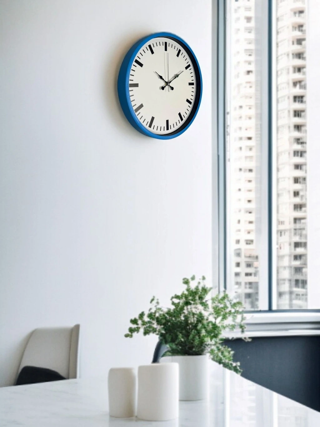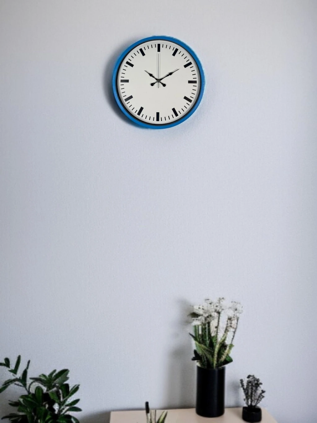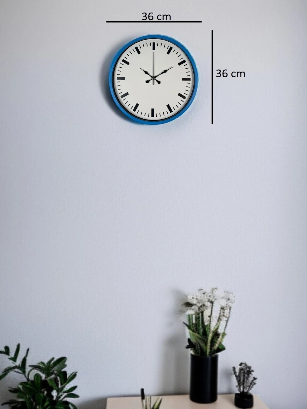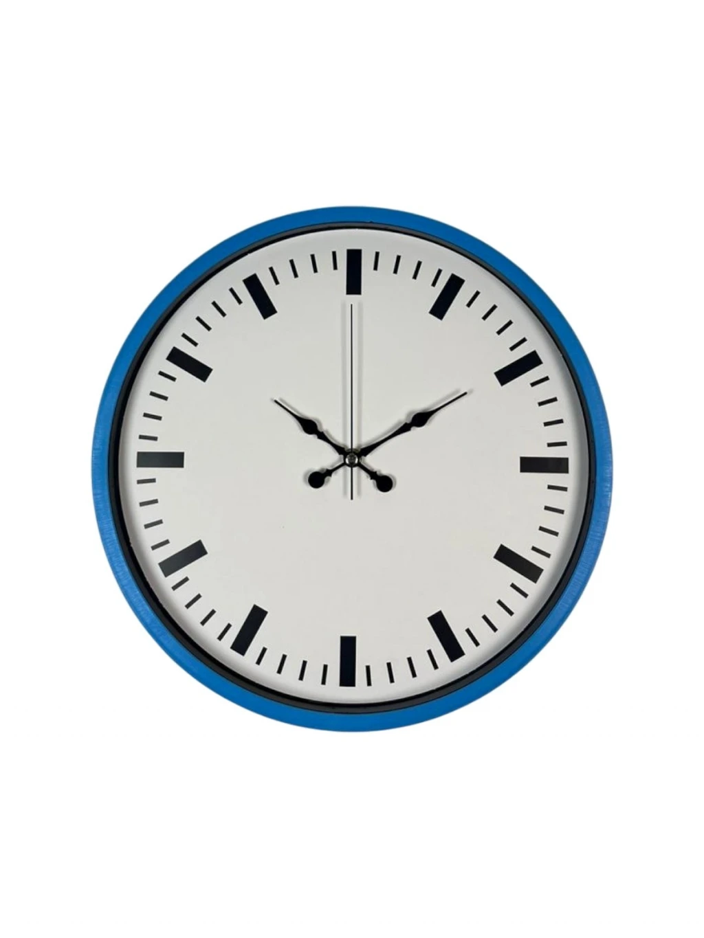 Canlı mavi çerçevesi ve sade beyaz kadran tasarımıyla öne çıkan bu 36 cm duvar saati, bulunduğu ortama ferah ve modern bir hava katar. Net ve minimal çizgilerle tasarlanan indeksleri sayesinde saati uzaktan bile rahatlıkla okumak mümkündür.