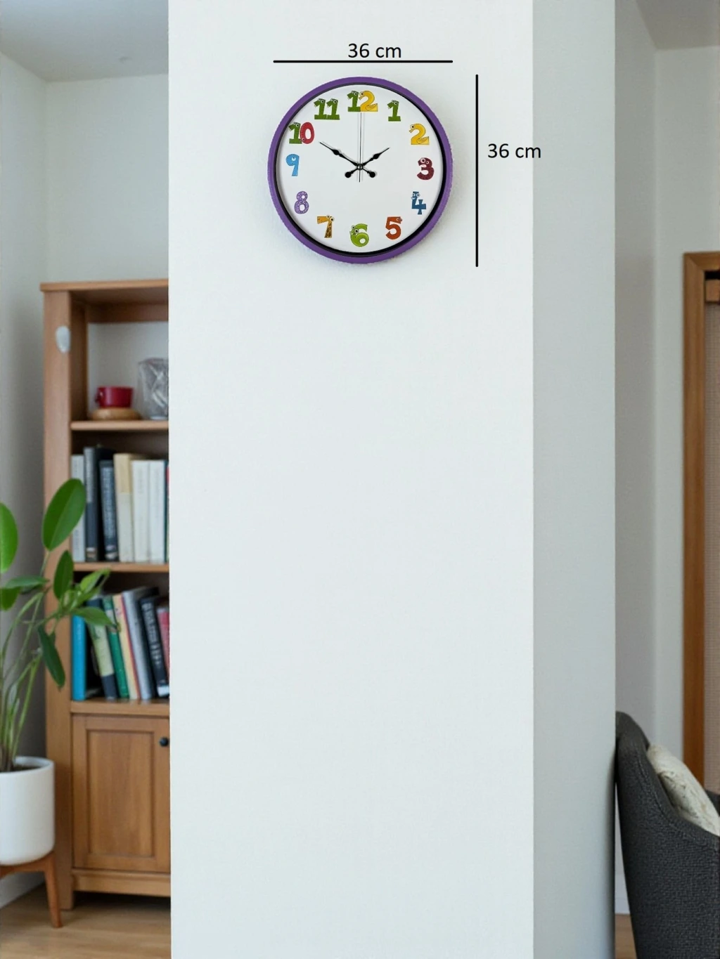 Renkli ve eğlenceli rakam tasarımlarıyla çocuk odalarına neşe katan bu 36 cm duvar saati, sessiz çalışması ve canlı görünümüyle hem dekoratif hem öğretici bir üründür. Çocukların saat öğrenmesini kolaylaştıran sevimli rakam karakterleri ile odalara enerji katar.