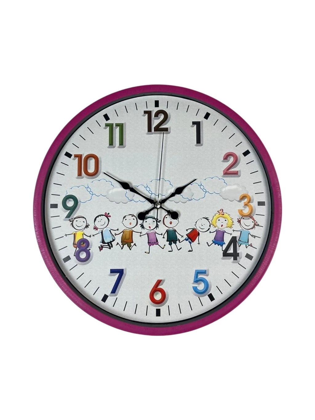 Canlı pembe çerçevesi, renkli rakamları ve sevimli çocuk figürleriyle tasarlanan bu 36 cm çocuk odası duvar saati, çocukların odasına neşe ve sıcak bir atmosfer kazandırır. Eğlenceli tasarımı sayesinde çocukların saat kavramını öğrenmesini desteklerken, odanın dekorasyonuna da enerjik bir dokunuş ekler.