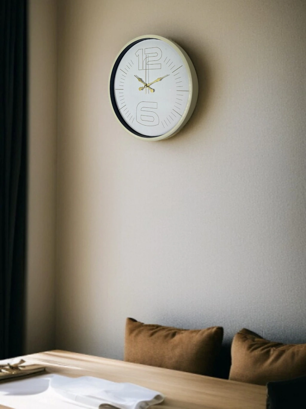 Krem renkli çerçevesi, açık tonlu kadranı ve gold detaylı akrep-yelkovan tasarımıyla öne çıkan bu 36 cm duvar saati; bulunduğu ortama ferah, modern ve şık bir atmosfer kazandırır. Üst ve alt kısımda yer alan büyük rakam tasarımı, saatin karakterini güçlendirirken sade çizgileriyle dikkat çekici bir görünüm sunar. Hem modern hem de klasik dekorasyonlara kolaylıkla uyum sağlar.