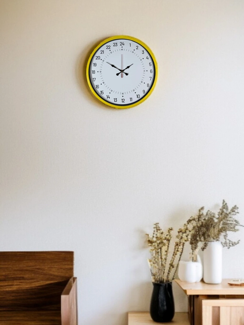 Klasik 12 saatlik saatlerden farklı olarak 24 saatlik zaman dilimini tek kadran üzerinde gösteren bu özel tasarım 36 cm sarı duvar saati, zamanı daha net ve bilinçli takip etmek isteyenler için ideal bir çözümdür. Günün tamamını tek bakışta görme imkânı sunan yapısı sayesinde, saat algısını güçlendirir ve alışılmışın dışında bir kullanım deneyimi sağlar.