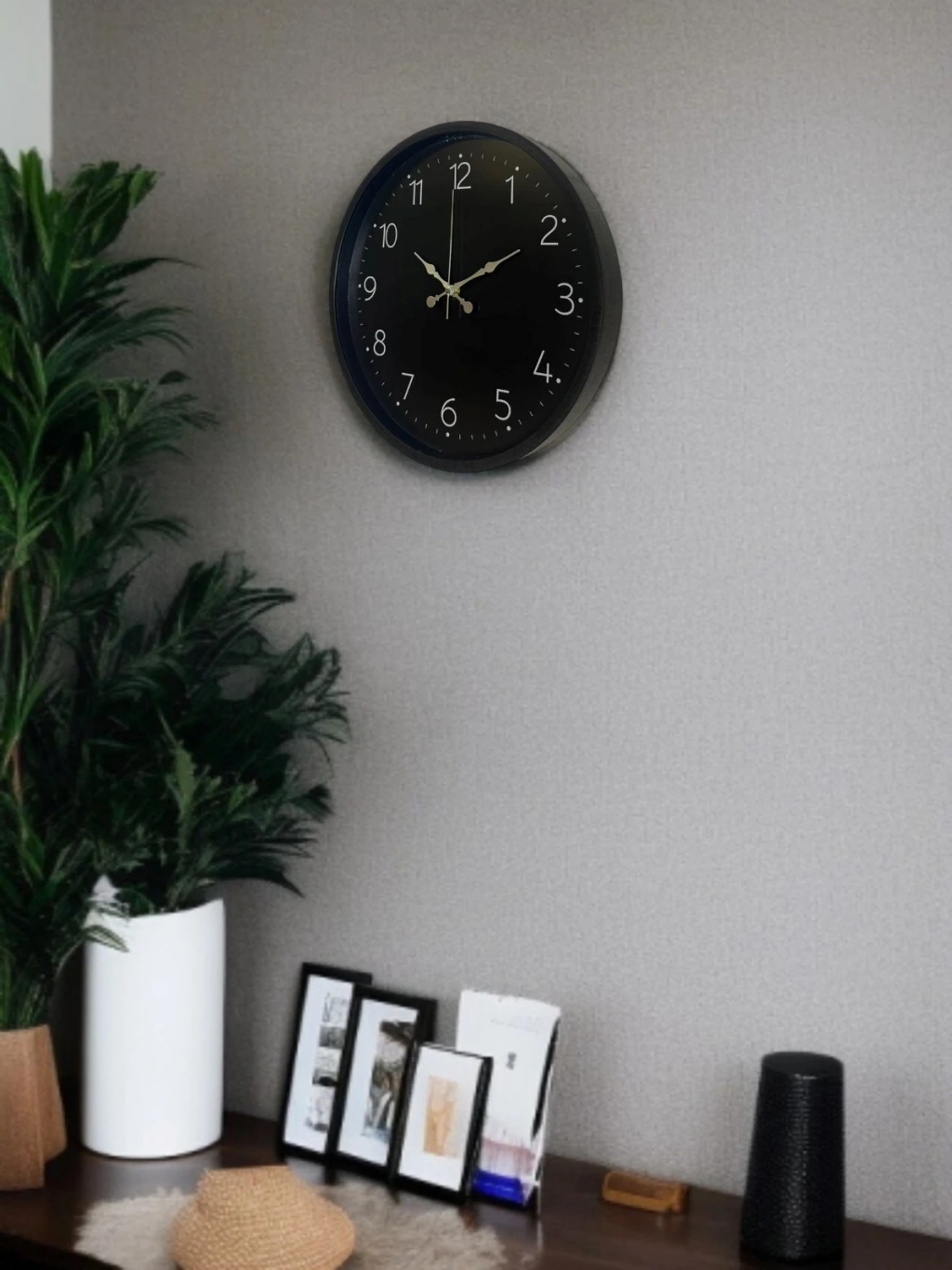 Mat siyah kadranı ve sade rakam tasarımıyla öne çıkan bu 36 cm duvar saati, modern yaşam alanları için şıklık ve fonksiyonelliği bir arada sunar. Beyaz rakamları ve zarif akrep-yelkovan yapısı sayesinde saat, uzaktan dahi kolayca okunur.