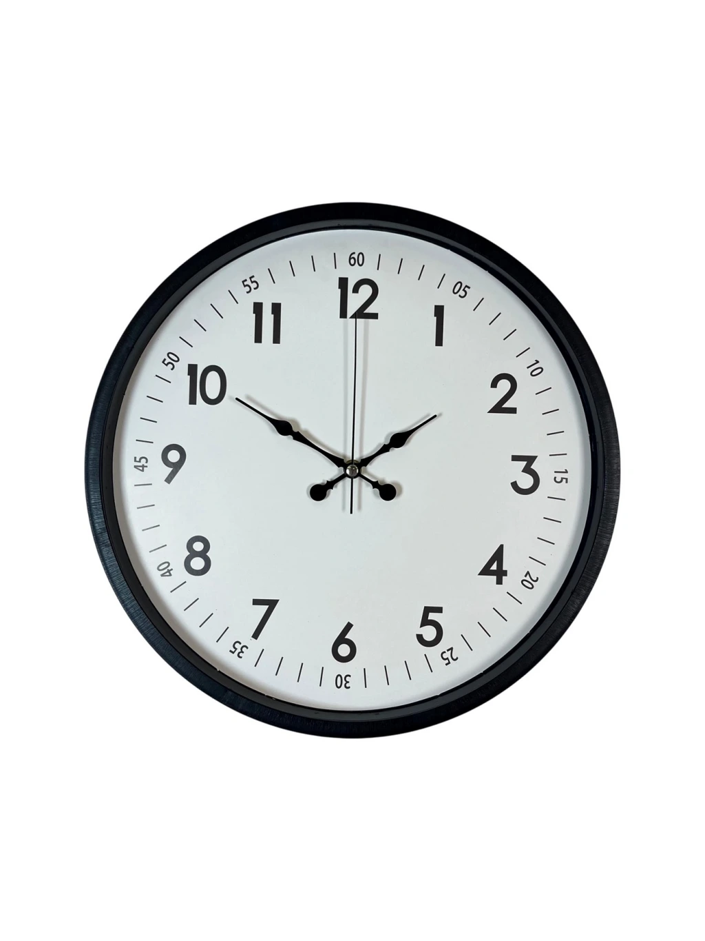 Modern ve sade tasarımıyla her dekorasyon tarzına uyum sağlayan bu 36 cm siyah duvar saati, hem estetik hem de fonksiyonel kullanım arayanlar için mükemmel bir seçimdir.; Mat siyah çerçevesi, beyaz zeminli geniş kadranı ve büyük okunaklı rakamları ile saati uzaktan bile kolayca görebilmenizi sağlar.; Kadrandaki ekstra dakika göstergeleri (05, 10, 15..; ) özellikle ofis, okul, çalışma ortamı ve hassas zaman takibi isteyen alanlar için büyük avantaj sağlar.; Saatin ön yüzünde kullanılan gerçek cam, plastik camlara göre çok daha dayanıklı olup uzun yıllar boyunca net ve parlak görünümünü korur.; Gerçek cam; sararma yapmaz, ışığı doğru kırar, çizilmeye karşı yüksek direnç sunar ve ürüne premium bir kalite hissi kazandırır.; Temizlendiğinde ilk günkü kadar berrak görünmesi, kullanıcıların en çok beğendiği özelliklerdendir.; Sessiz çalışan akar saniye (sweep) mekanizması, tıkırtı sesi çıkarmadan akıcı bir hareket sunar.; Bu sayede saat; yatak odası, çalışma odası, ofis, kütüphane ve sessizlik gerektiren tüm mekanlar için kusursuz bir kullanım sağlar.; Rahatsız edici hiçbir ses çıkarmaz, gün boyu ve gece boyunca konforlu bir sunar.; Dayanıklı plastik gövdesi hafif olup duvara kolayca monte edilebilir.; Siyah çerçevesinin modern ve şık görünümü; ev, ofis, çalışma alanı, mağaza, kafe, salon veya endüstriyel tarz dekorasyonlarda güçlü bir tamamlayıcıdır