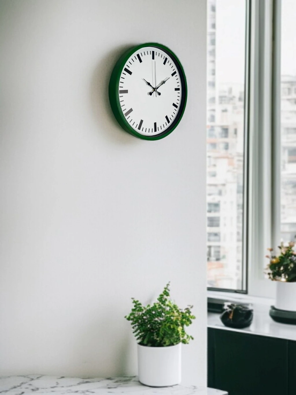 Minimal çizgilere sahip kadranı, yaşam alanlarına sakin ve dengeli bir atmosfer kazandırırken; yeşil çerçevesi mekâna doğal ve şık bir dokunuş ekler. Salon, mutfak, ofis, çalışma odası ve bekleme alanları için ideal bir tercihtir.