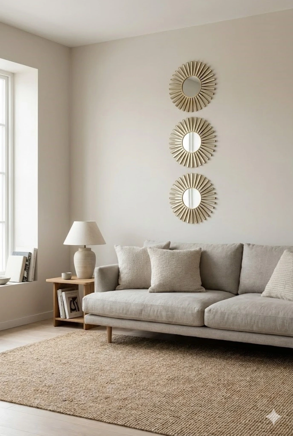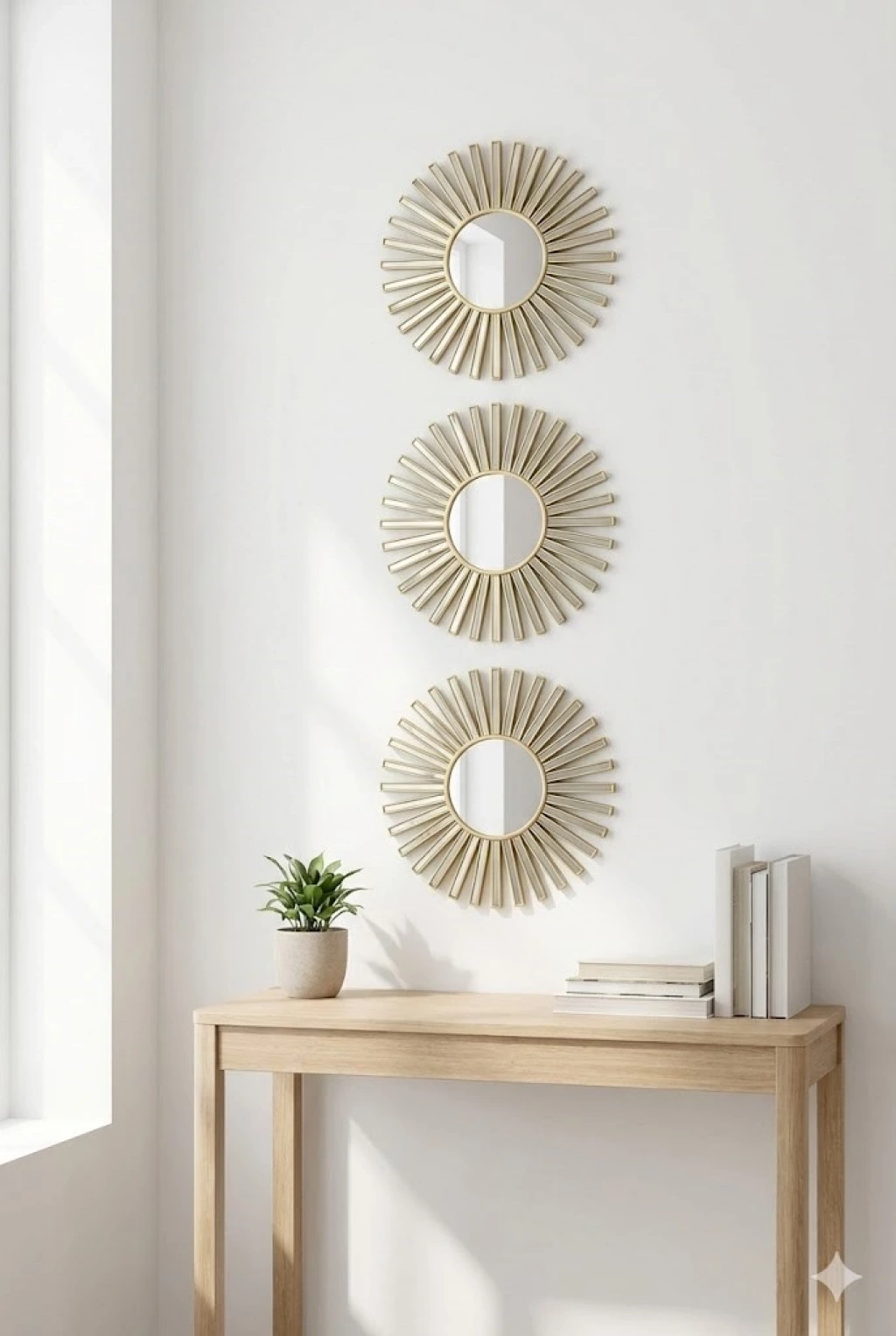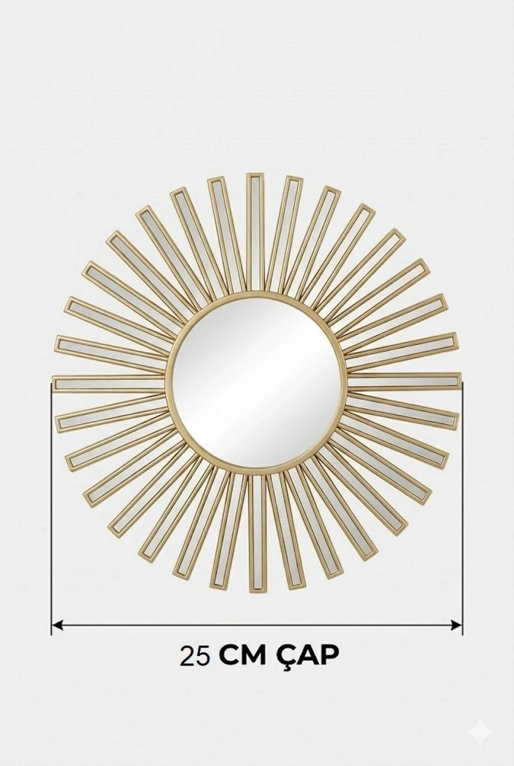 Evinize modern ve şık bir dokunuş kazandıran 3’lü gold güneş desenli duvar aynası seti, zarif tasarımı ve kompakt ölçüsüyle dekorasyonunuzu tamamlar.