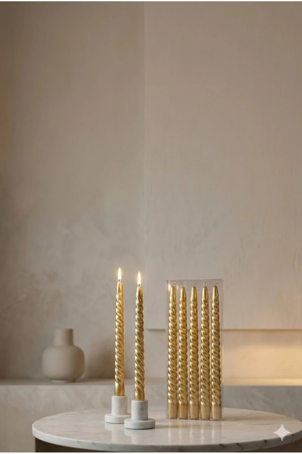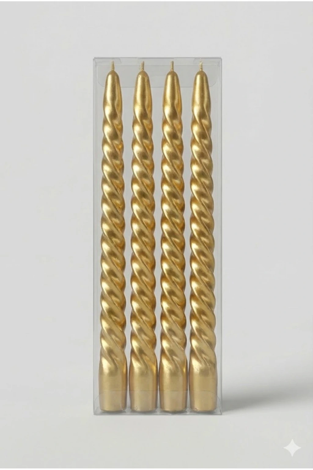 4'lü Lüks Burgu Şamdan Mumu 26 cm - Damlatmaz Spiral Dekoratif Mum Seti