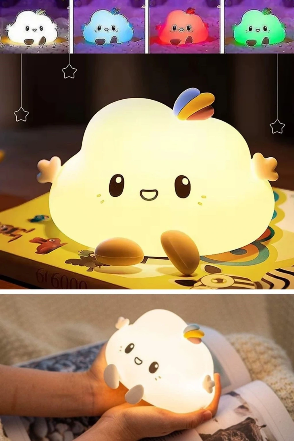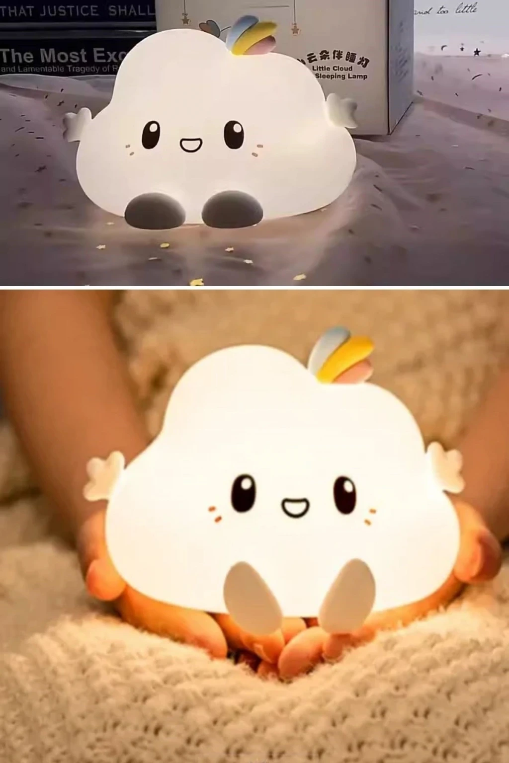 Bulut Figürlü Pofuduk LED Gece Lambası – Yumuşak Dokulu Masaüstü Aydınlatma, Çocuk Odası ve Dekoratif Şarjlı Ortam Işığı