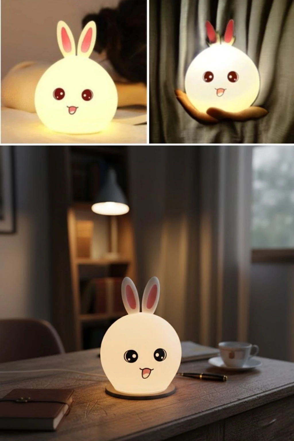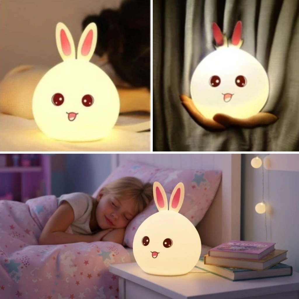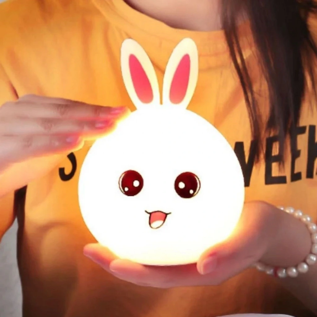 Tavşan Figürlü Pofuduk LED Gece Lambası – Yumuşak Dokulu Masaüstü Aydınlatma, Çocuk Odası ve Dekoratif Şarjlı Ortam Işığı