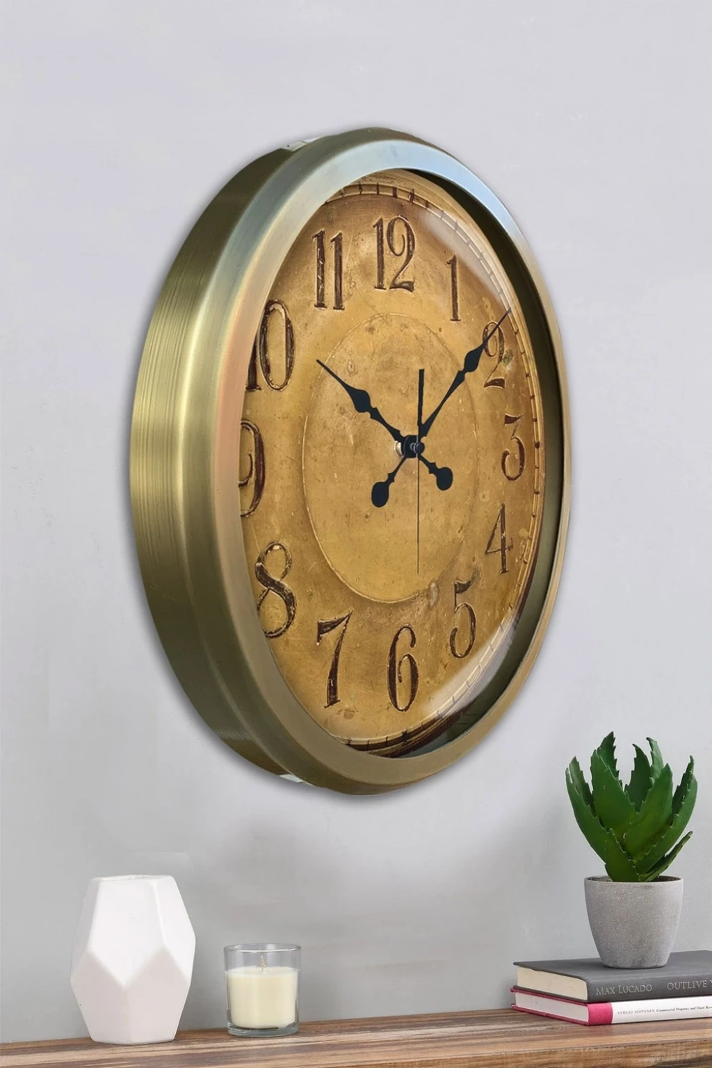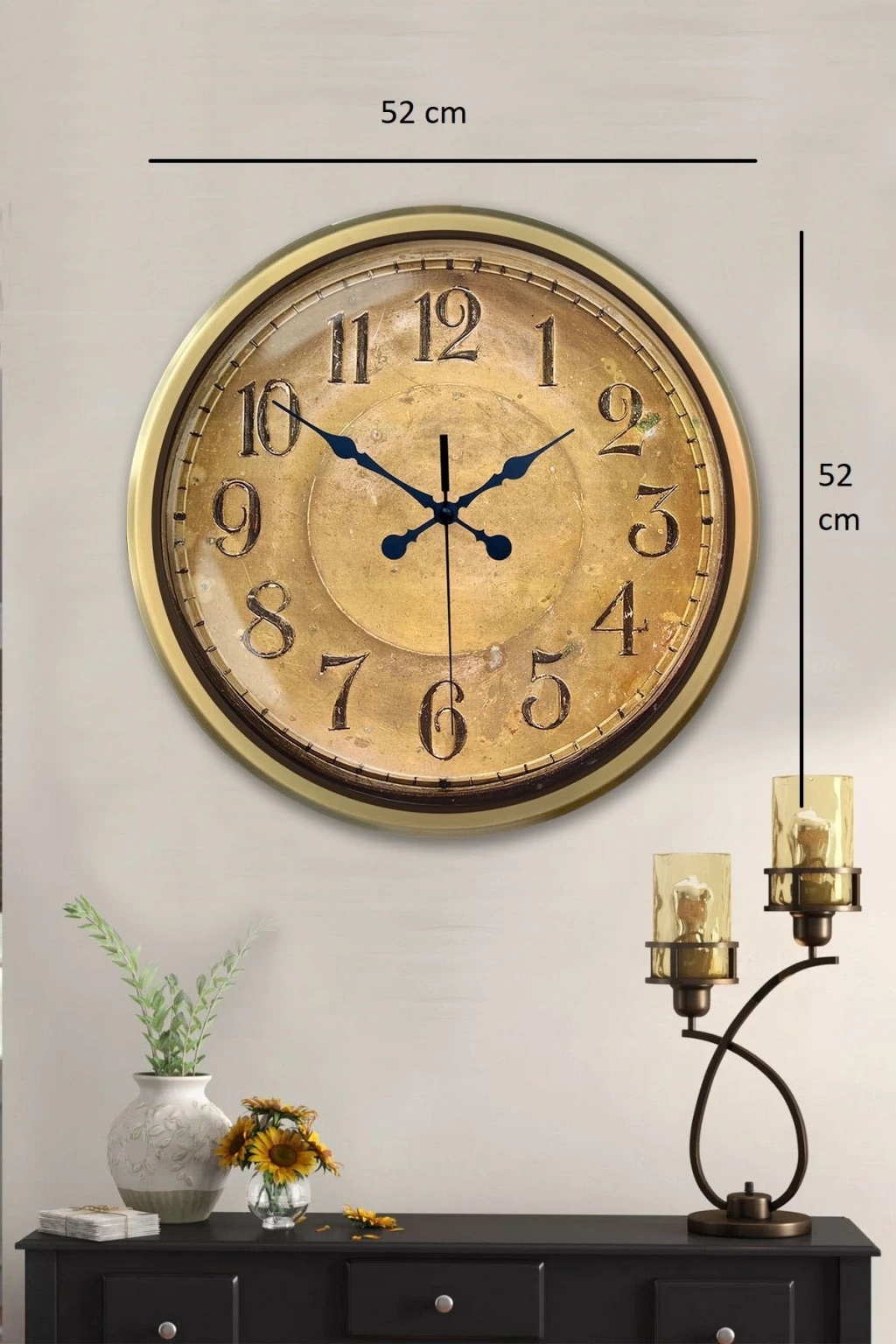 Şık ve modern tasarımıyla dikkat çeken 52 cm eskitme duvar saatimiz, sessiz akar saniye mekanizmasıyla konforlu bir kullanım sunar. Gerçek cam koruma paneli sayesinde uzun ömürlü ve dayanıklıdır. Estetik görünümüyle hem ev hem de iş yerleri için ideal bir dekoratif üründür.