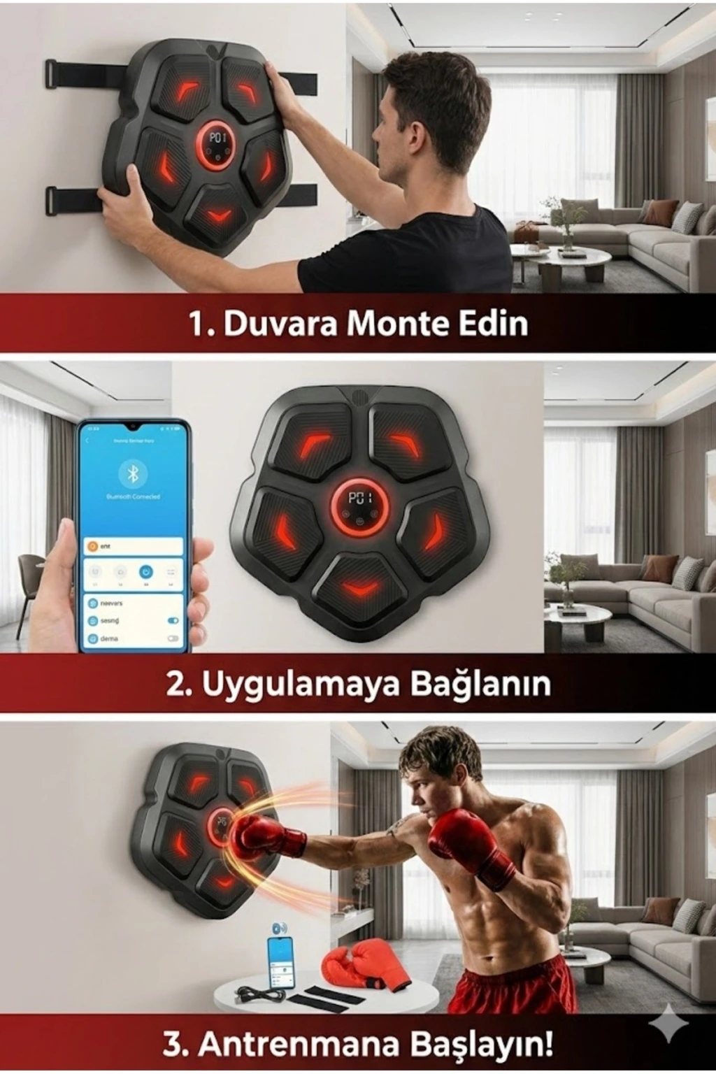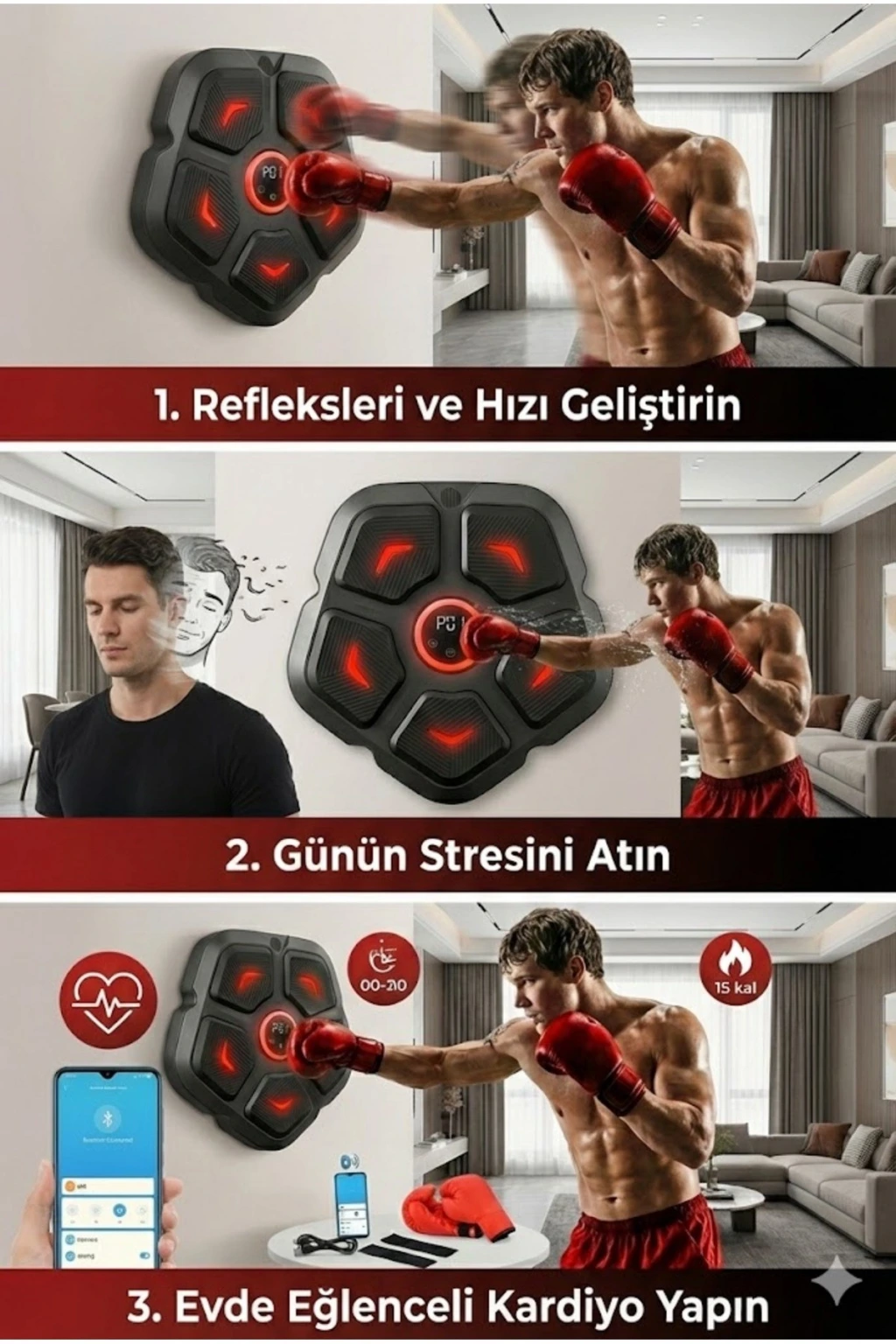 Akıllı Duvar Boks Hedefi: Bluetooth Müzikli, Işıklı Refleks ve Stres Atma