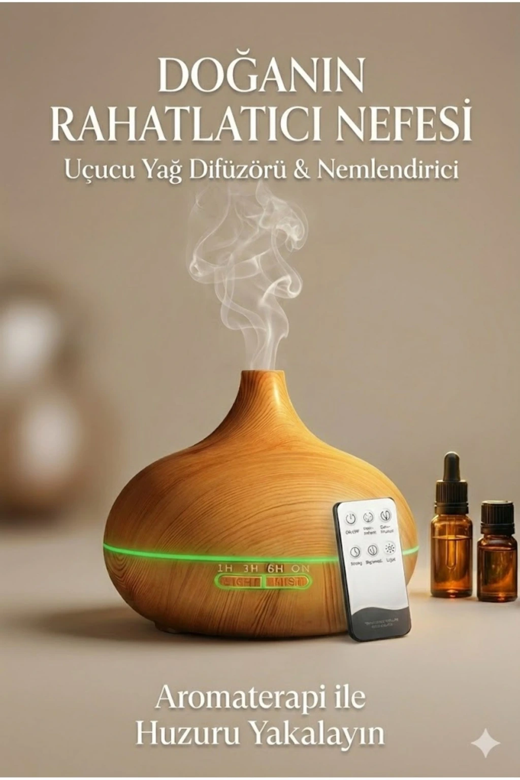 Aroma Difüzör Gece Işığı 7 Led Nemlendirici Kumandalı 550 ml Buhar Makinesi