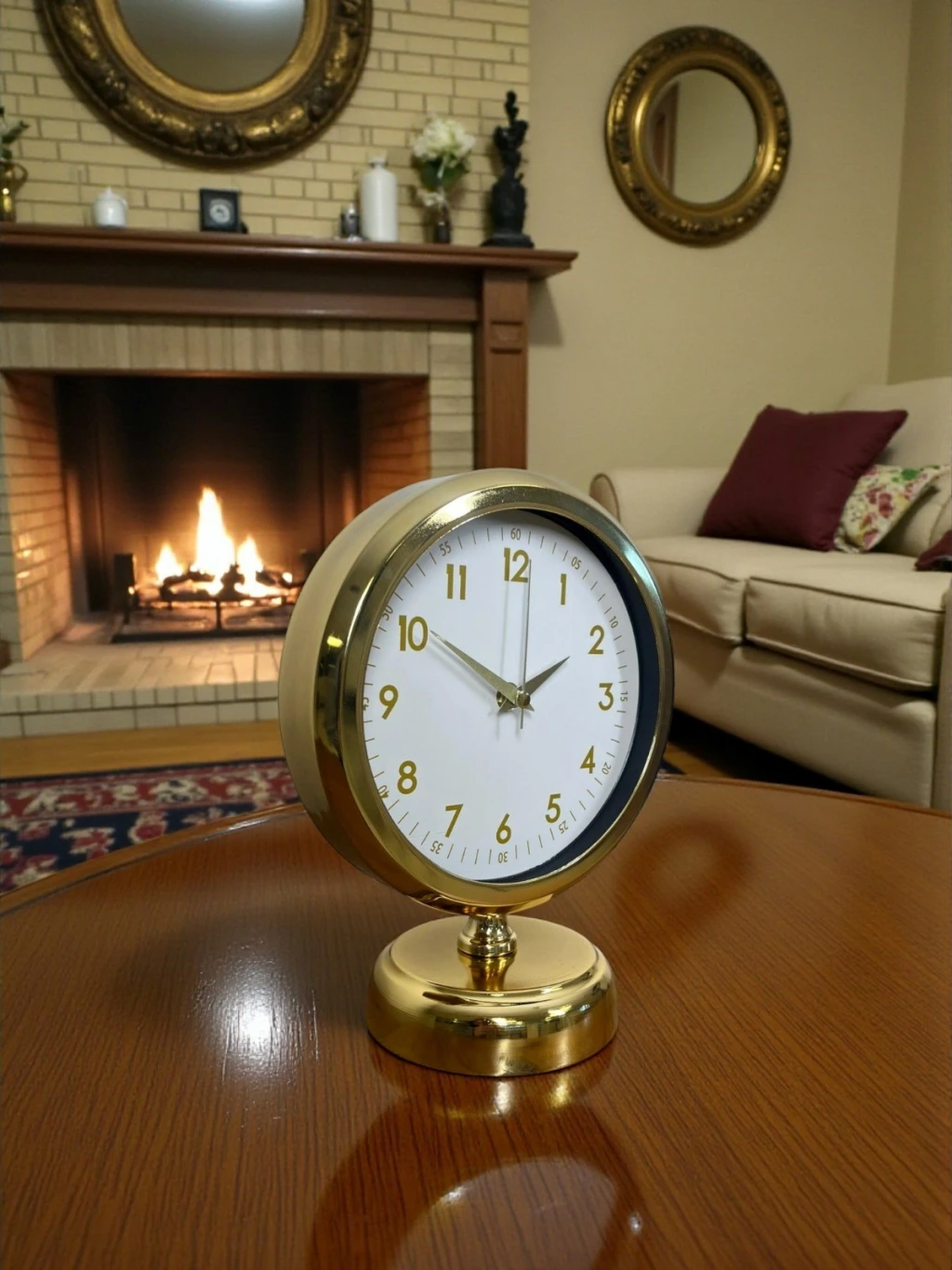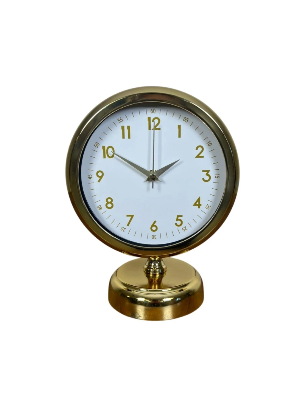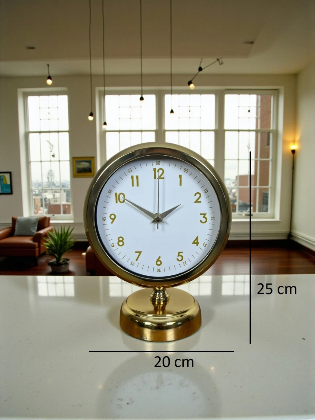 Minimal çizgileri ve klasik tasarımı bir araya getiren bu gold masa saati, beyaz kadranı ve gold detaylarıyla bulunduğu her ortama ferah, şık ve düzenli bir görünüm kazandırır. Gözü yormayan sade tasarımı sayesinde hem modern hem de klasik dekorasyonlarla rahatlıkla uyum sağlar. Çalışma masasında, salon konsolunda ya da ofis ortamında dekoru tamamlayan zarif bir aksesuar olarak öne çıkar.
