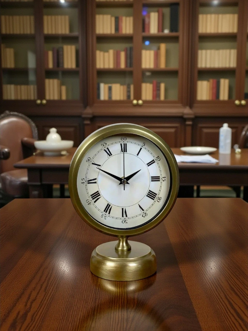25 x 20 cm ölçüsü ile masa, komodin, konsol, kitaplık ve vitrin üzerinde ideal bir boyuta sahiptir. Dengeli tabanı sayesinde sağlam durur ve bulunduğu ortamda şık bir dekoratif obje olarak öne çıkar. Roma rakamları, saate klasik ve sofistike bir hava kazandırır.