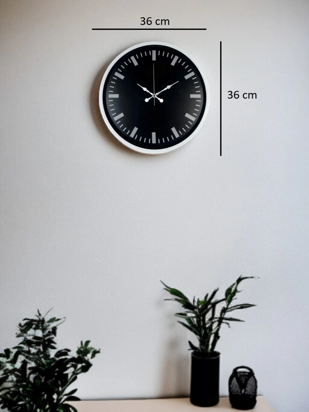 Minimal çizgileri ve güçlü siyah-beyaz kontrastı ile öne çıkan bu 36 cm duvar saati, modern dekorasyonun vazgeçilmez tamamlayıcısıdır. Beyaz kasa ile siyah kadranın oluşturduğu net görünüm, bulunduğu ortama sade ama iddialı bir hava katar.