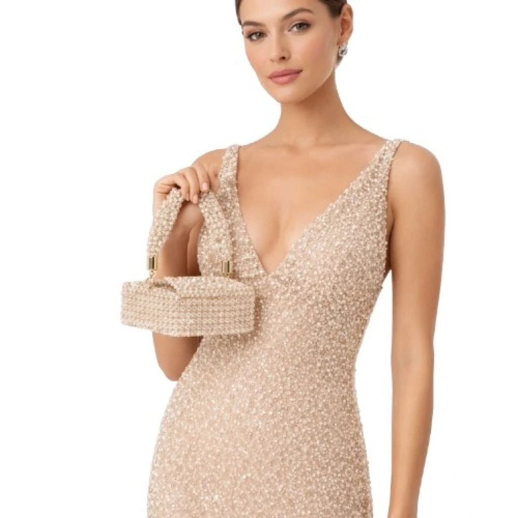 Kristal yüzey, keskinlikten arındırılmış köşelere sahip dikdörtgen gövde formu üzerinde eşit yoğunluk sağlayacak şekilde üç boyutlu örgü tekniğiyle oluşturulmuştur. Boncuk dizilimi ve örgü açıları, yüzey sürekliliğini bozmayacak biçimde milimetrik toleranslarla kontrol edilmiştir.