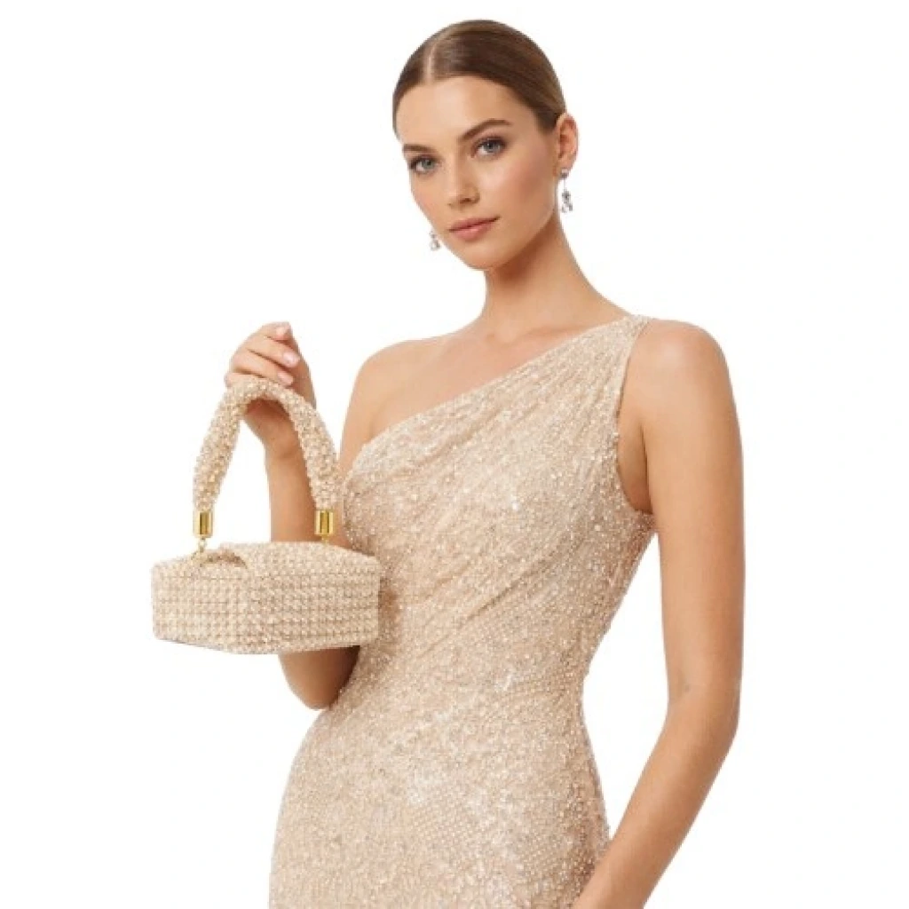 Minimal geometrisi, yoğun kristal işçiliği ve sofistike duruşuyla Bianca Mandorla, Crystal Gelato Couture serisinin konsept niteliği taşıyan, zamansız bir tasarım parçasıdır.