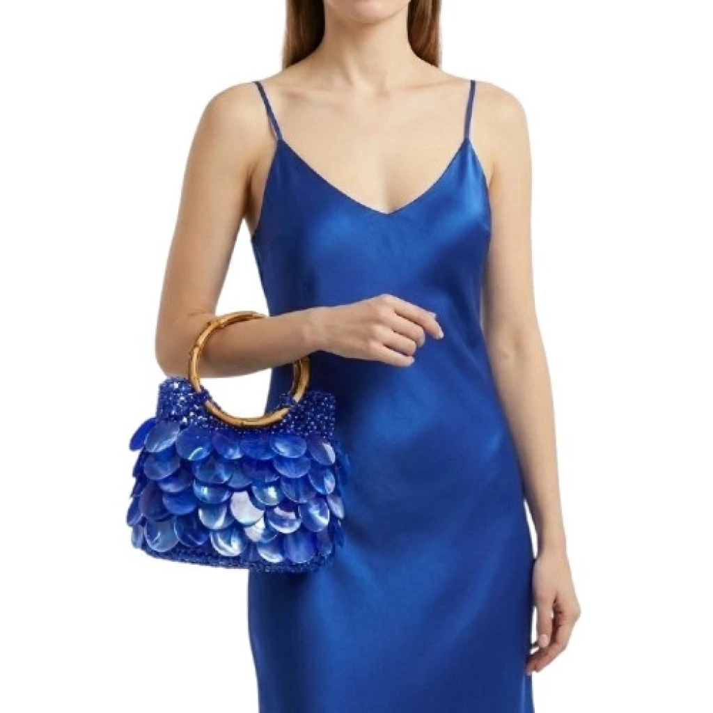 Yüzey formu, organik kesimli doğal sedef disklerin üst üste bindirilmesiyle oluşturulmuş çok katmanlı bir modül yapısına sahiptir. Bu yapı, çanta gövdesinde kontrollü bir hacim derinliği ve dinamik bir yüzey hareketi yaratırken, ışıkla temas eden her modülün bağımsız kırılım üretmesini sağlayacak biçimde konumlandırılmıştır. Katmanlar arasındaki milimetrik aralıklar, yüzeyde doğal bir akış hissi ve sofistike bir doku sürekliliği oluşturur.