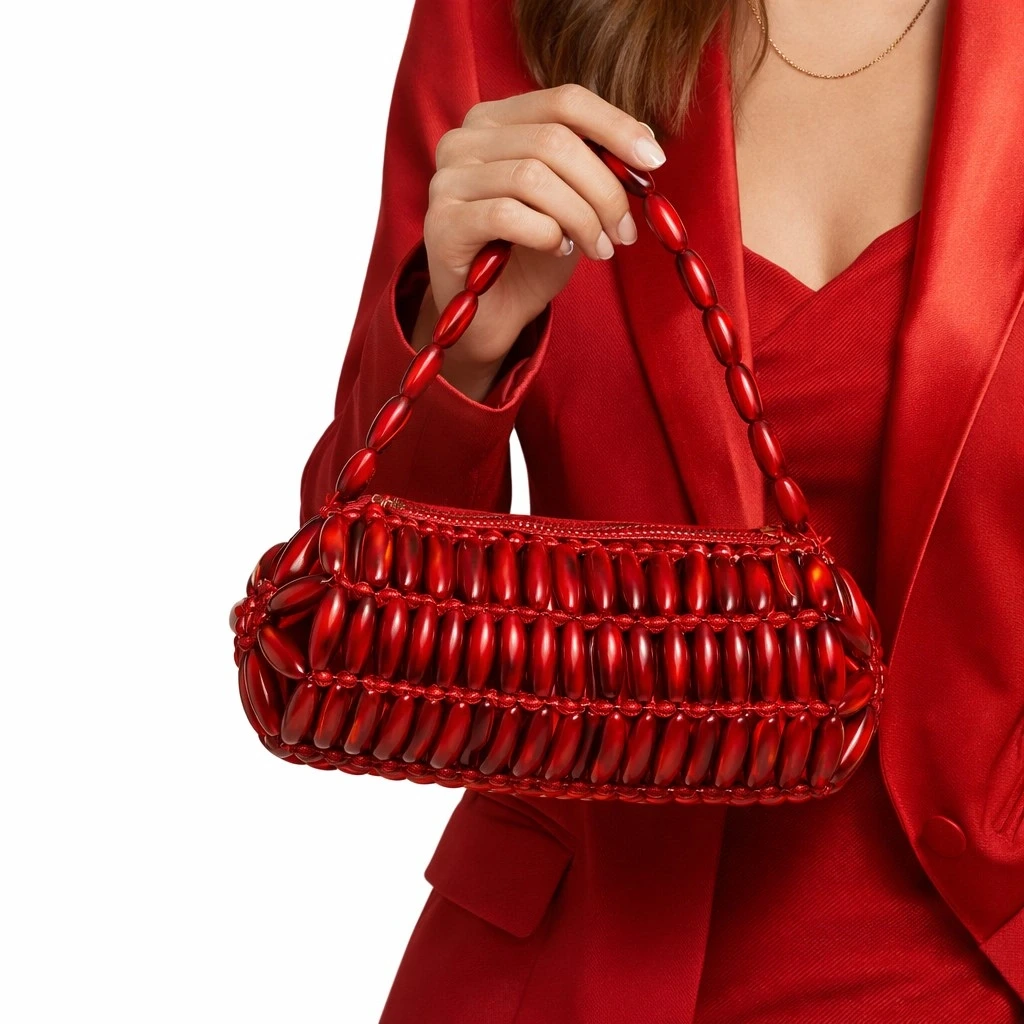 Atelier Emine’in Creamstone Couture serisine ait Calista Inferno, doğal sedef (mother-of-pearl) modüllerin, yüksek dayanımlı şeffaf bağlantı elemanları ve monofilament sistemlerle tek tek birleştirilmesiyle üretilmiş; referans çanta kategorisinde konumlanan, yüksek işçilik yoğunluğuna sahip premium bir el çantası tasarımıdır.