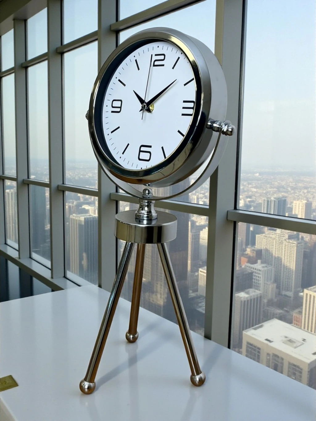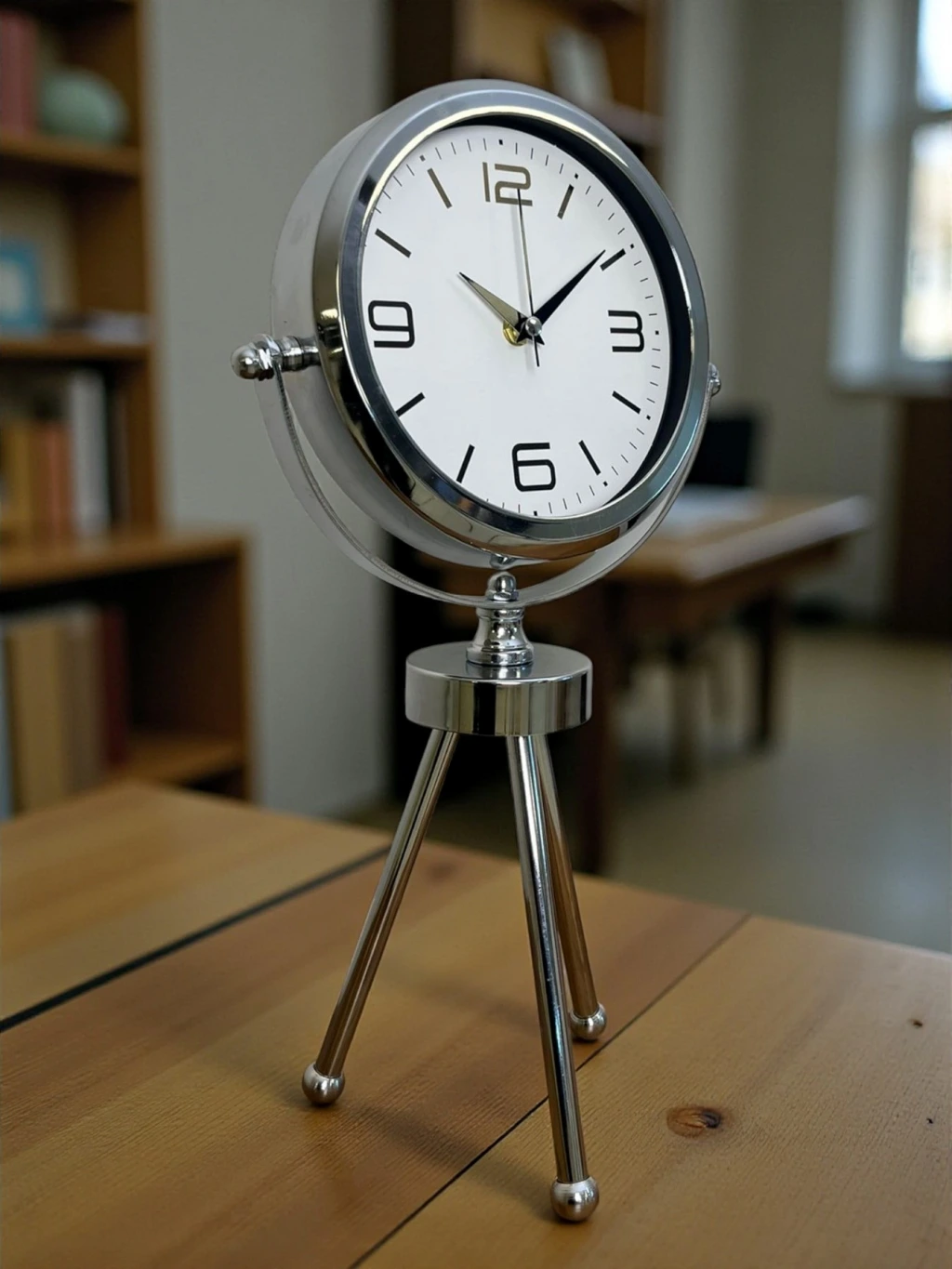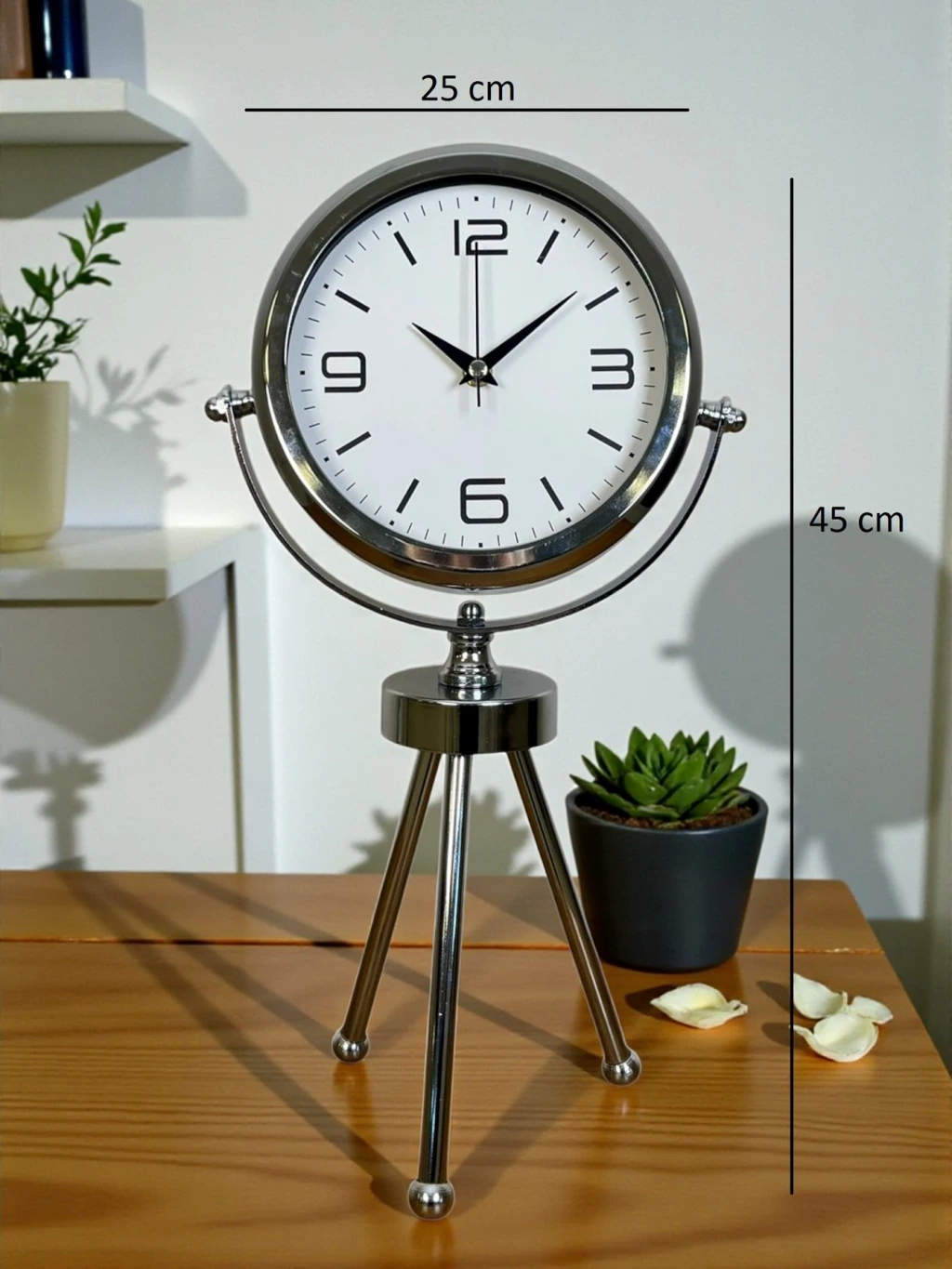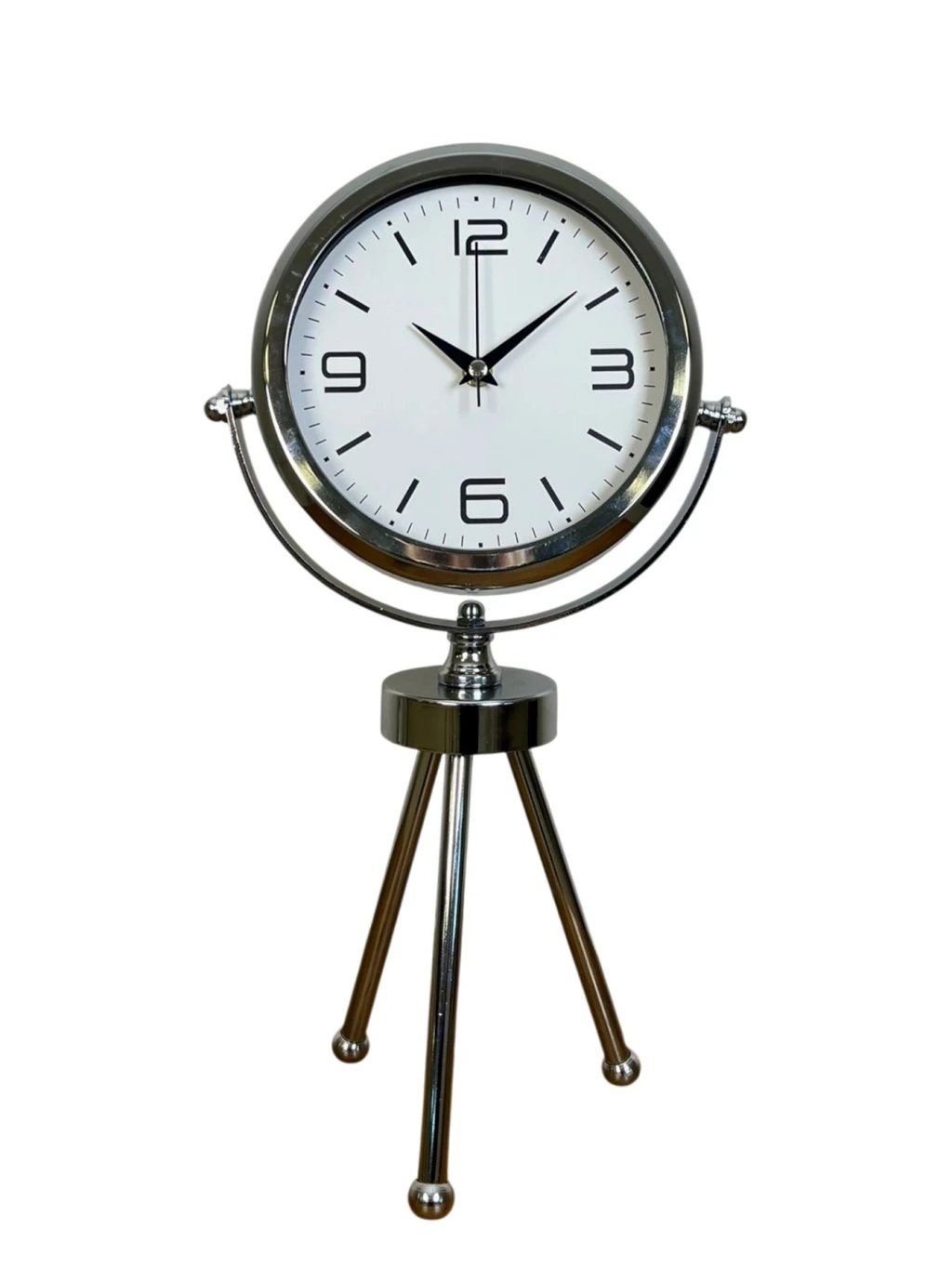 Elegance Krom Tripod Üç Ayaklı Metal Masa Saati