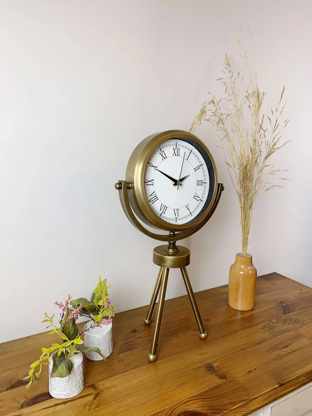 Eskitme Dekoratif Üç Ayaklı Masa Saati