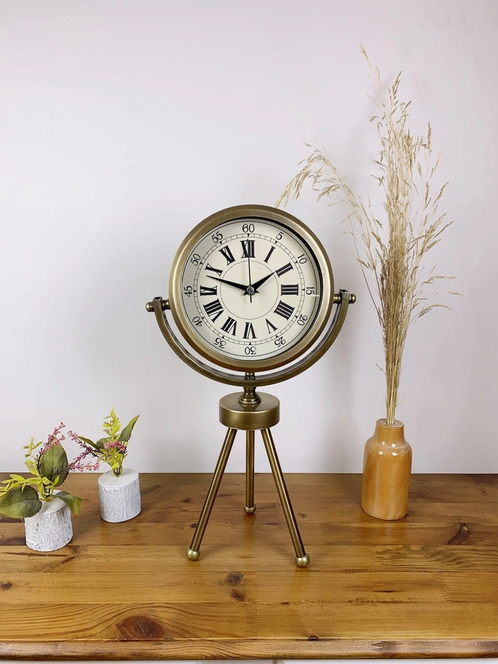 Eskitme Metal Mini Tripod Orient Masa Saati 45×26 cm