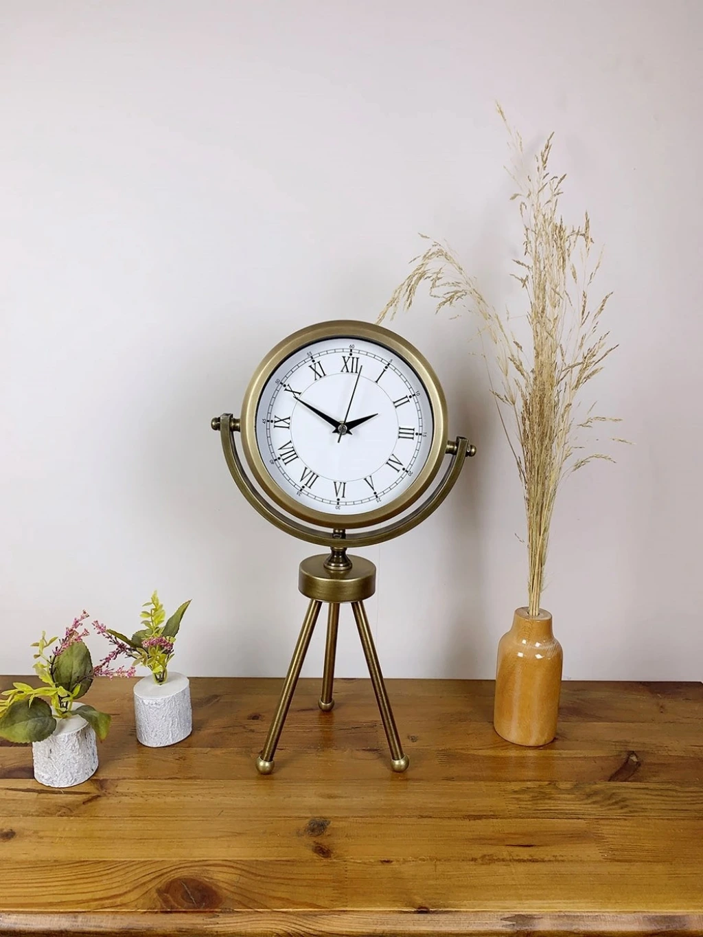 Eskitme Metal Mini Tripod Retro Masa Saati 45×26 cm