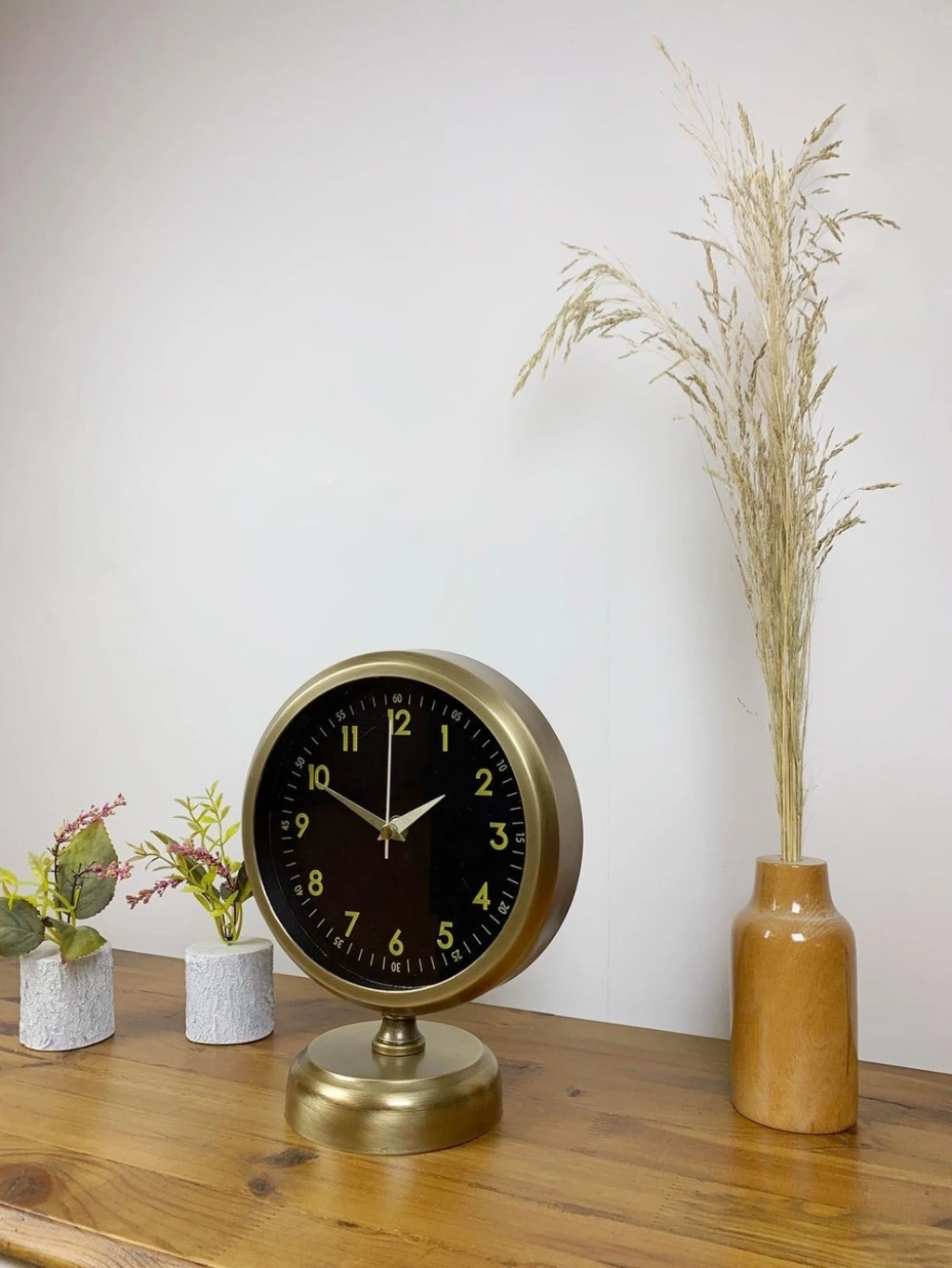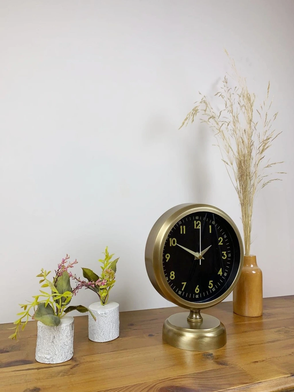 Şık ve modern tasarımıyla dikkat çeken  eskitme kaplama masa saatimiz, sessiz akar saniye mekanizmasıyla konforlu bir kullanım sunar. Gerçek cam koruma paneli sayesinde uzun ömürlü ve dayanıklıdır. Estetik görünümüyle hem ev hem de iş yerleri için ideal bir dekoratif üründür.