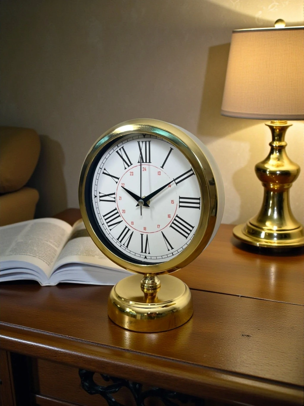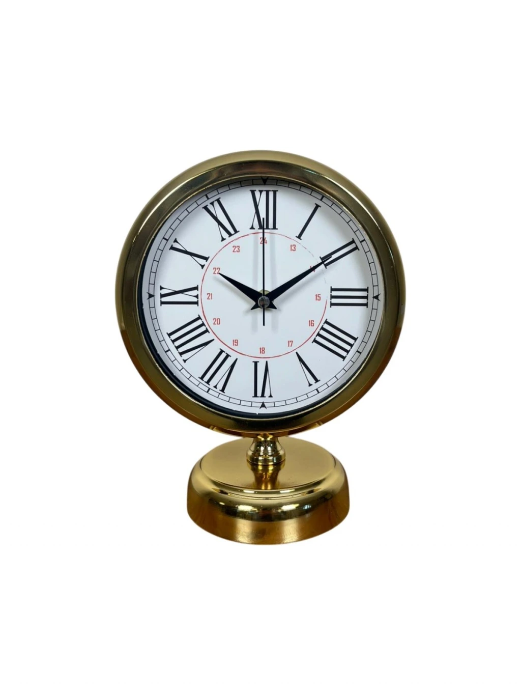 Klasik dekorasyonun vazgeçilmezi olan Roma rakamları, gold kasanın ışıltısı ve sade kadran tasarımıyla birleşerek bu masa saatini hem şık bir aksesuar hem de günlük kullanımda pratik bir ürün haline getiriyor. 25 x 20 cm ölçüsü sayesinde masada yer kaplamadan dikkat çeker; çalışma masası, salon konsolu, raf veya komodin üzerinde bulunduğu ortama anında zarif ve prestijli bir hava katar.