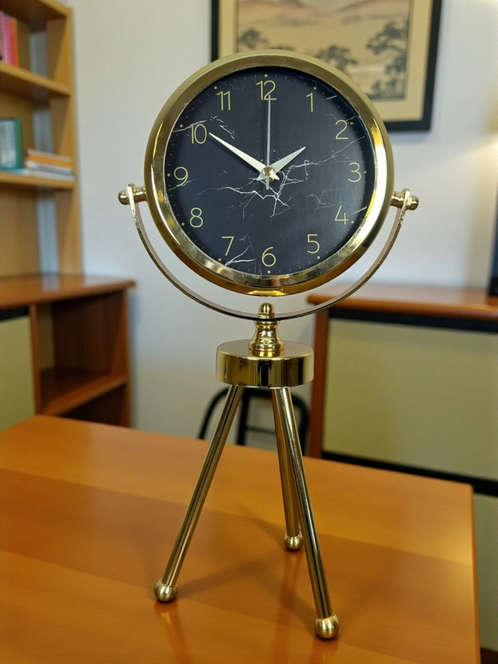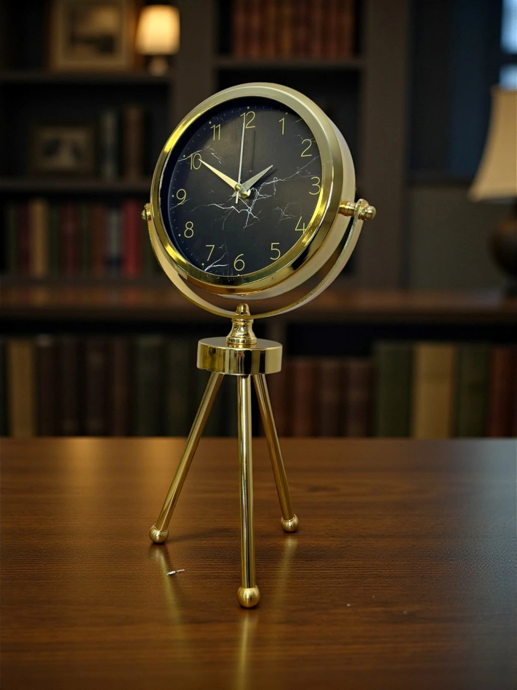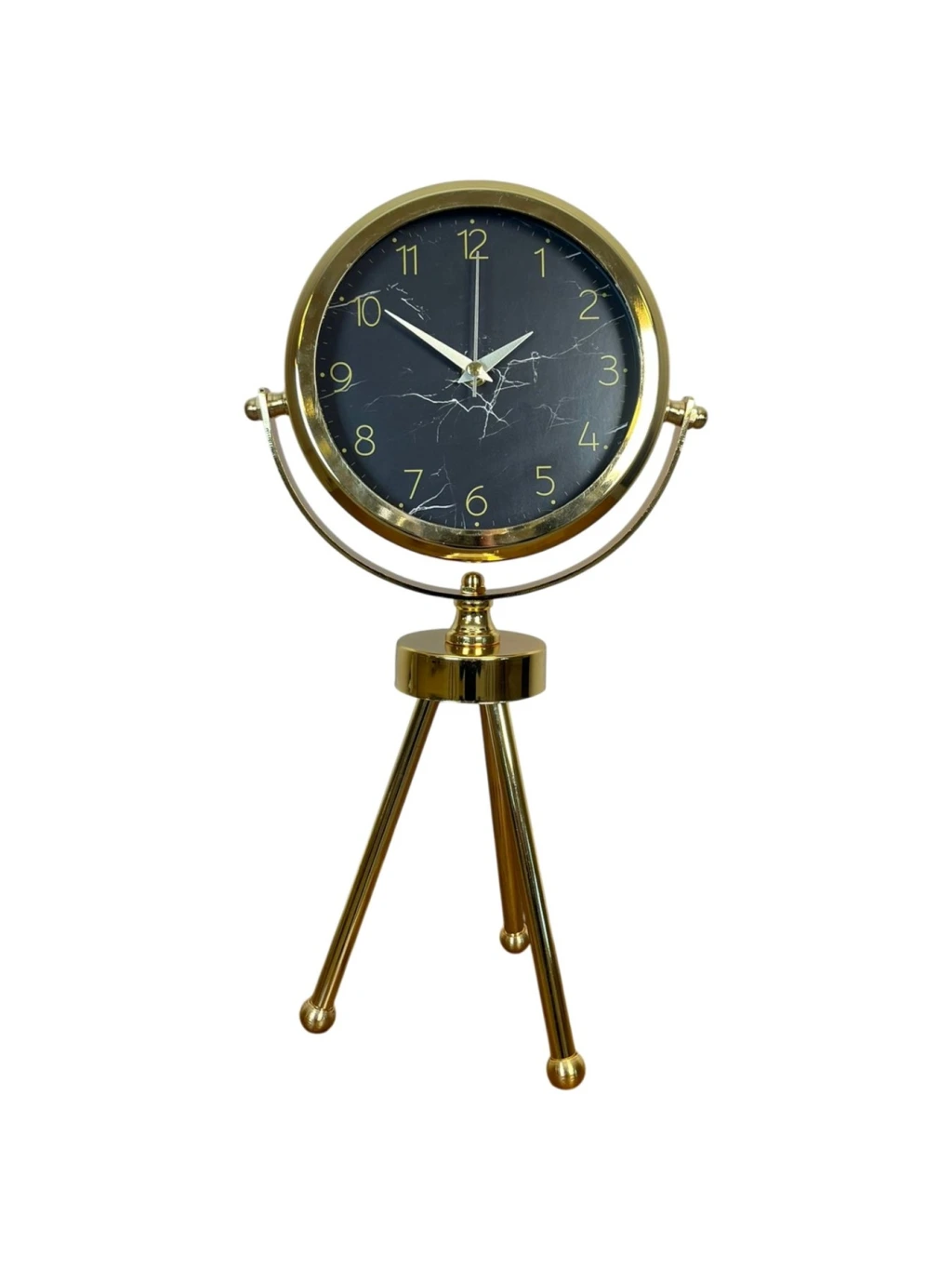 Gold & Black Uyumlu Şık Üç Ayaklı Metal Masa Saati