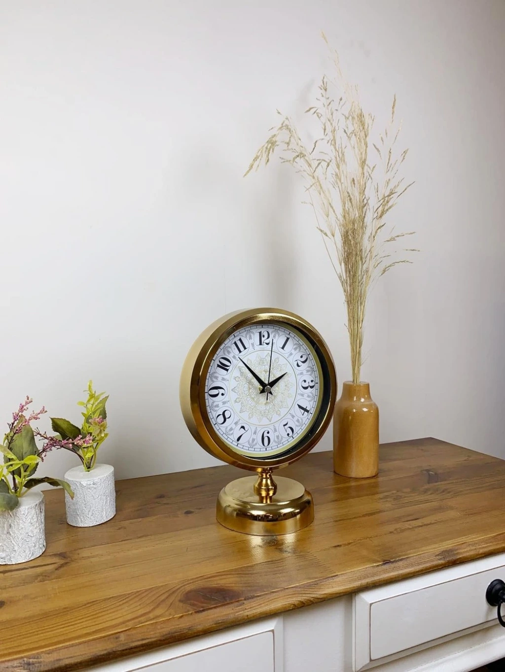 Gold Metal Çini Desen Masa Saati 25×20 cm