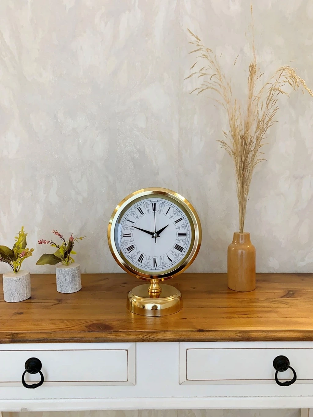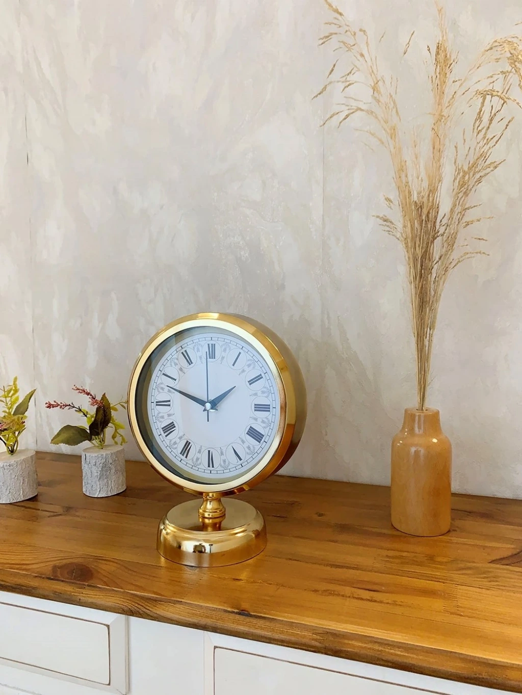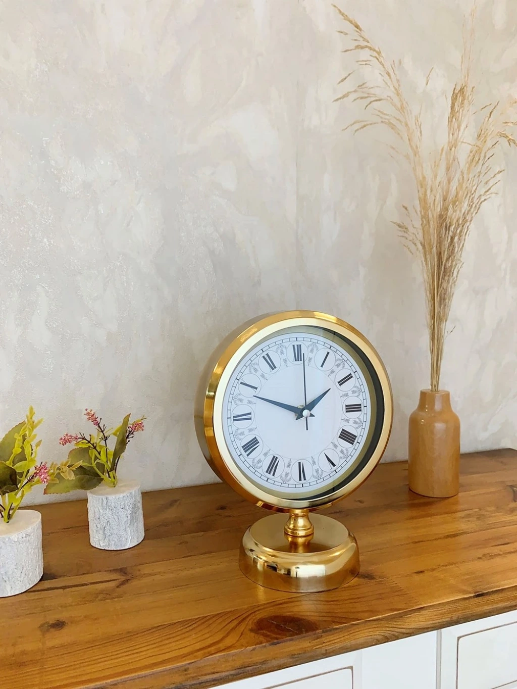 Şık ve modern tasarımıyla dikkat çeken gold kaplama masa saatimiz, sessiz akar saniye mekanizmasıyla konforlu bir kullanım sunar. Gerçek cam koruma paneli sayesinde uzun ömürlü ve dayanıklıdır. Estetik görünümüyle hem ev hem de iş yerleri için ideal bir dekoratif üründür.