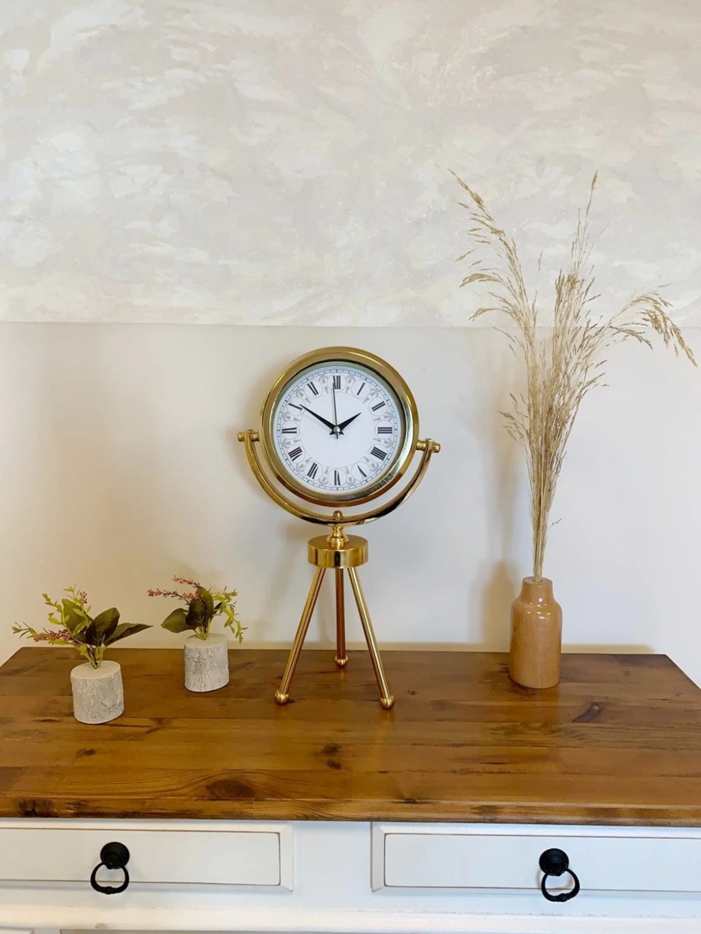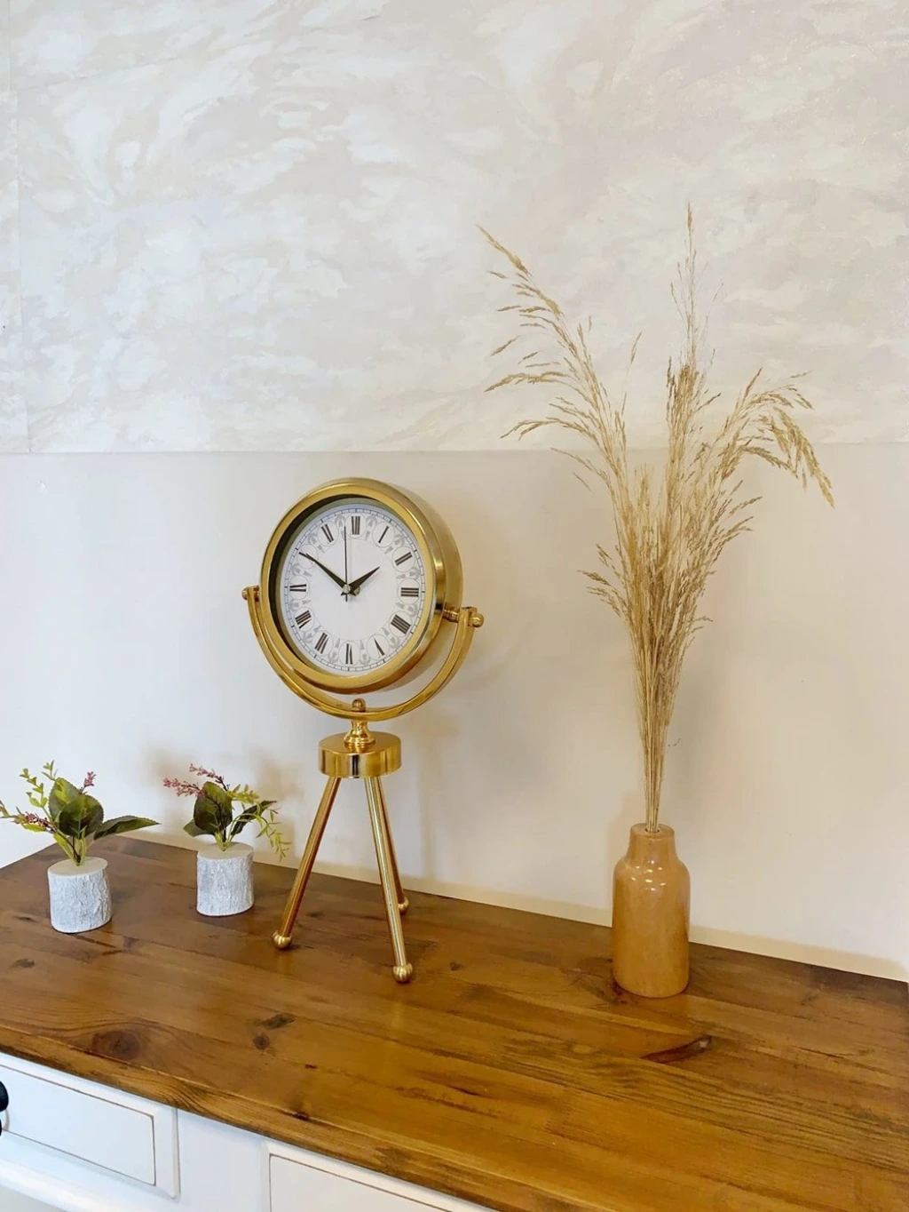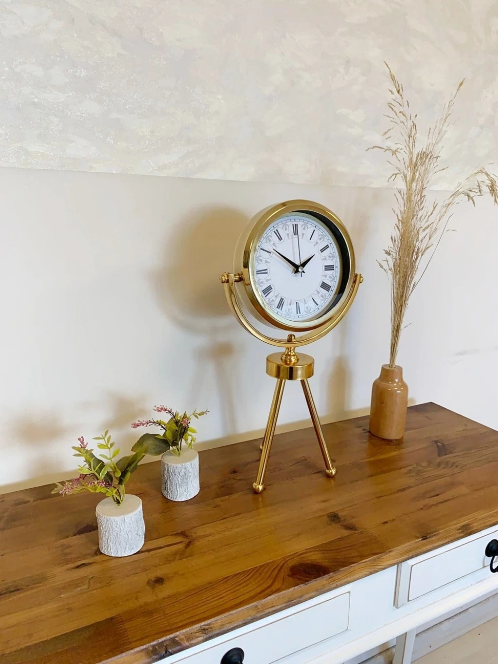 Gold Metal Mini Tripod Desenli Roma Rakamı Masa Saati 45×26 cm