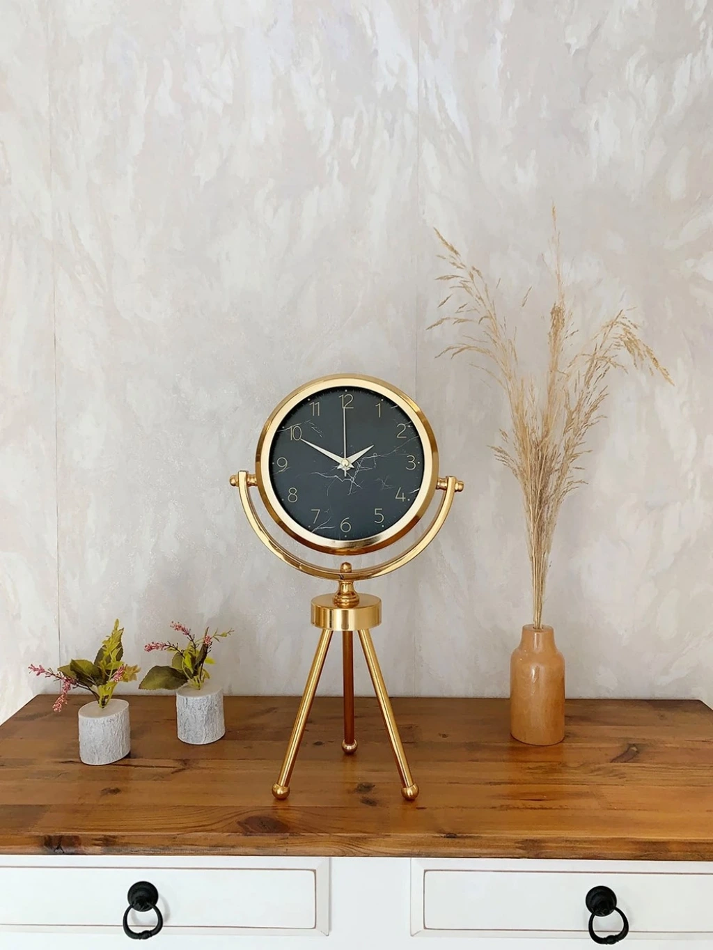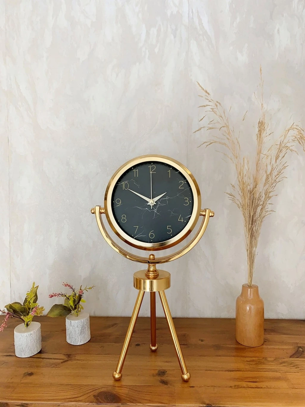 Gold Metal Mini Tripod Mermer İlhamı Masa Saati 45×26 cm