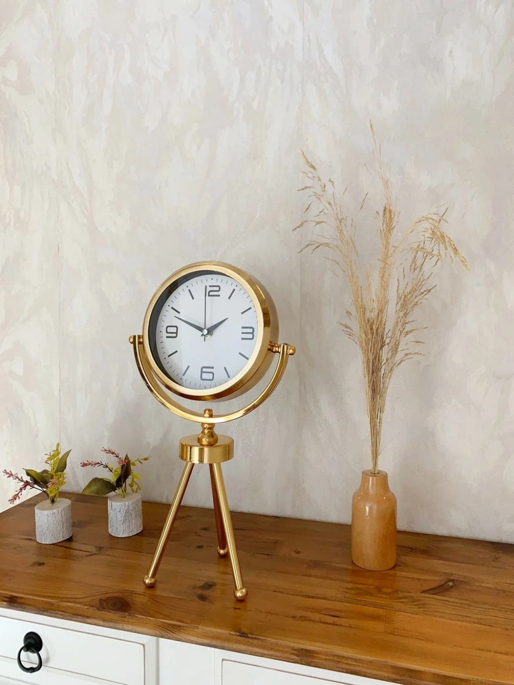 Evinize ve ofisinize şıklık katacak Gold Metal Mini Tripod Modern Masa Saati, zarif tasarımı ve kaliteli yapısıyla dekorasyonunuza değer katar. 45×26 cm ölçülerindeki bu özel tasarım saat, 20 cm çerçeve çapı ve gerçek cam ön paneli ile hem dayanıklı hem de estetik bir kullanım sunar.