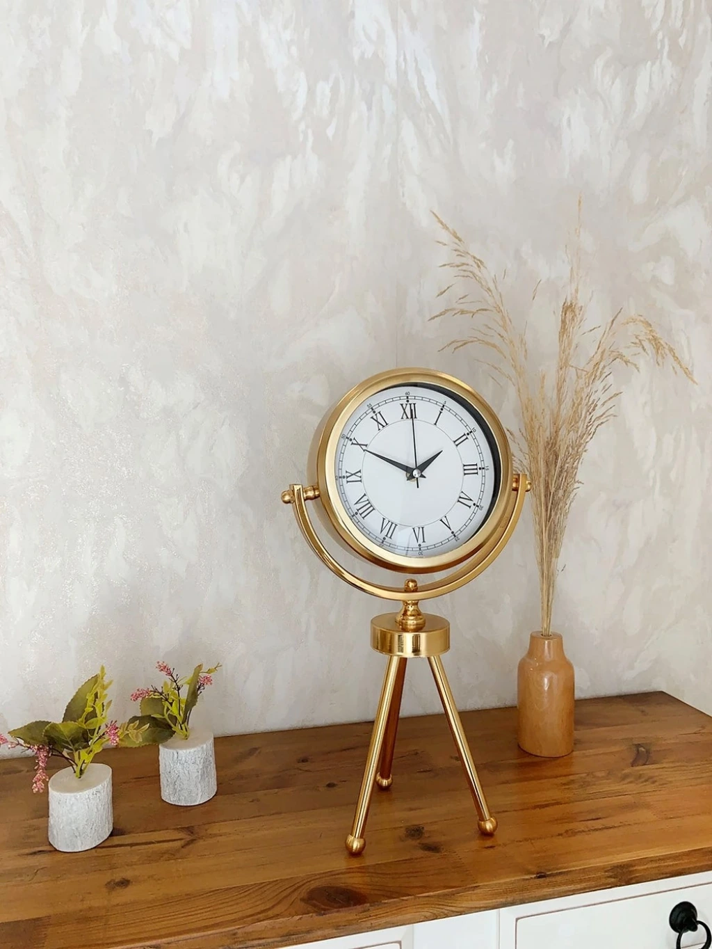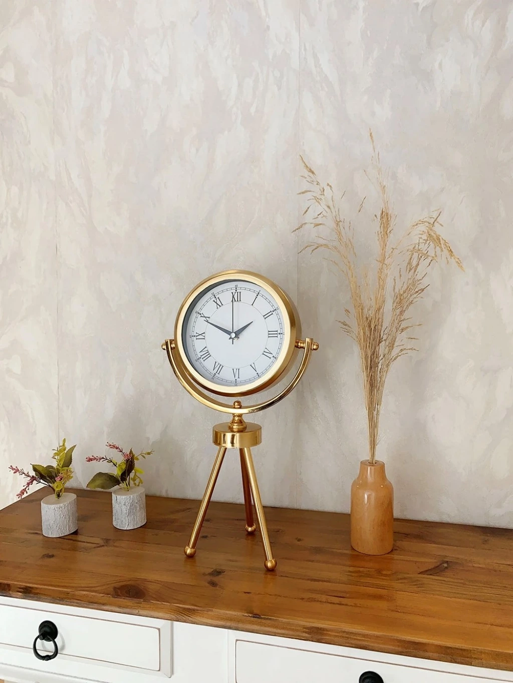 Gold Metal Mini Tripod Retro Masa Saati 45×26 cm