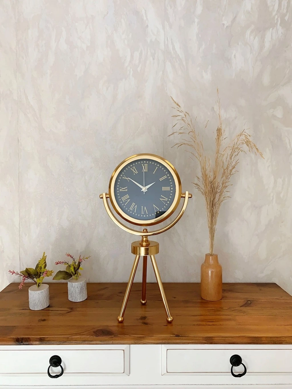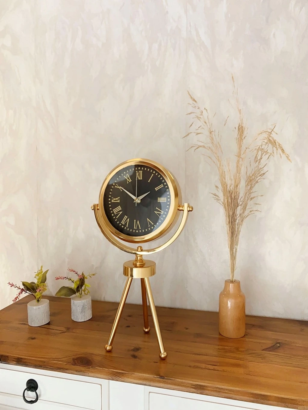 Gold Metal Mini Tripod Sade Masa Saati 45×26 cm