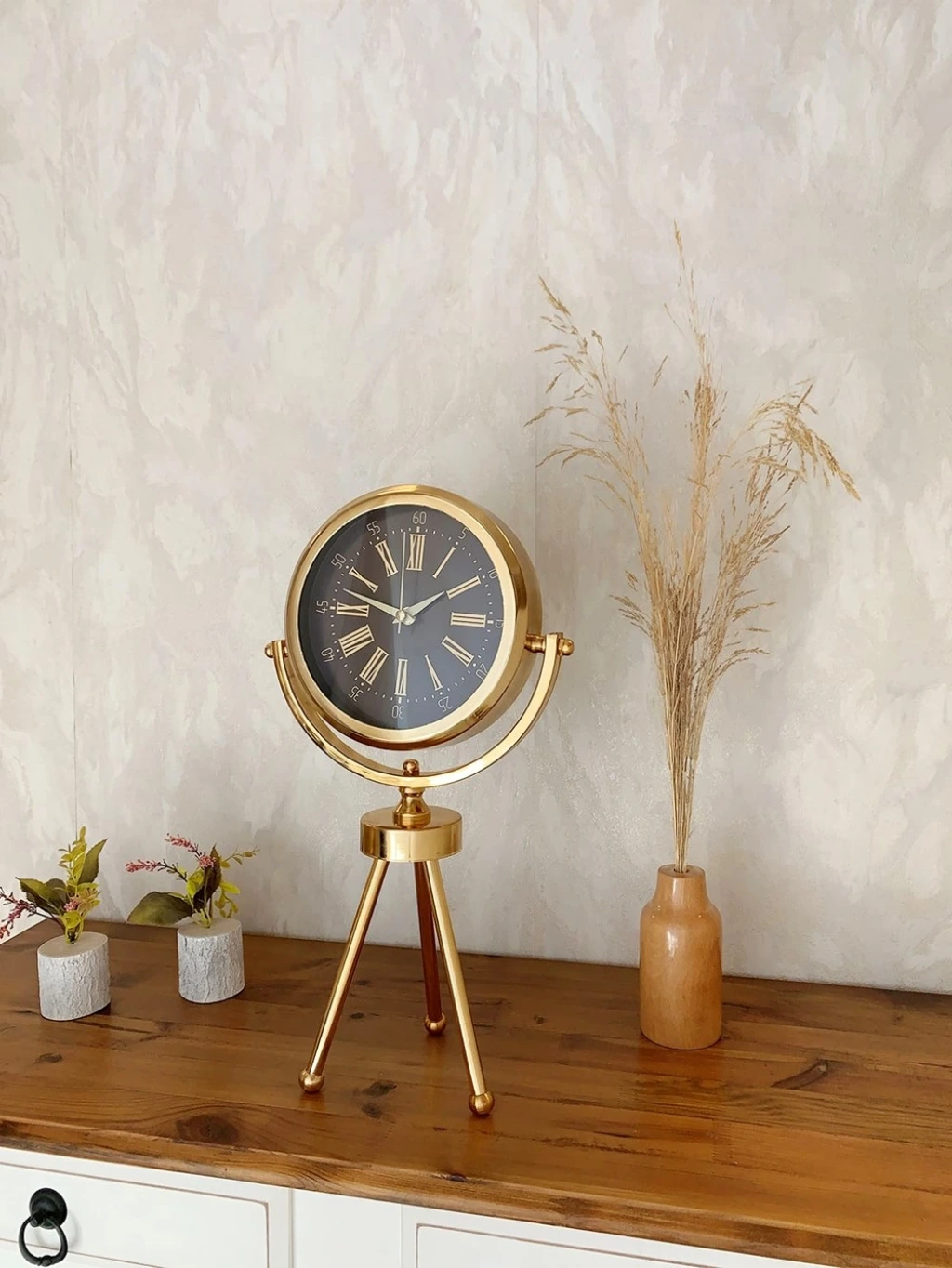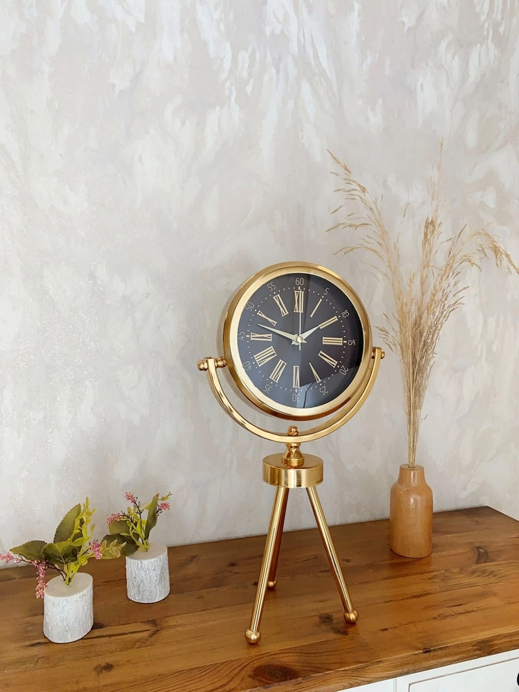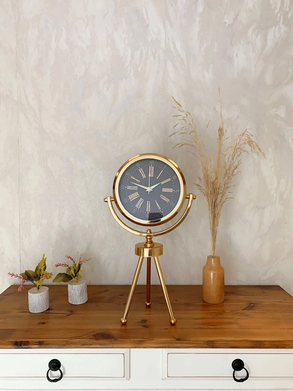 Gold Metal Mini Tripod Zarif Masa Saati 45×26 cm