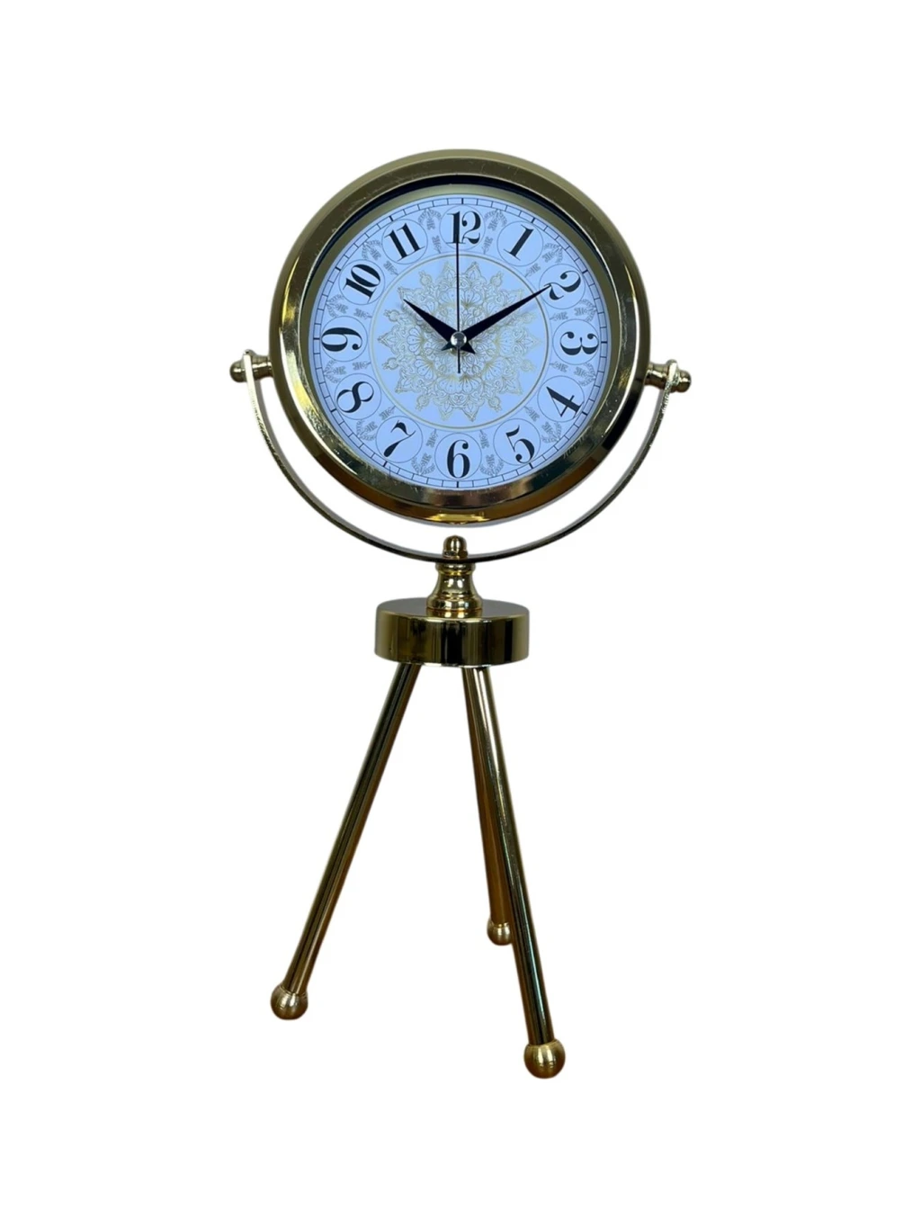 Gold Royal Motifli Üç Ayaklı Metal Masa Saati