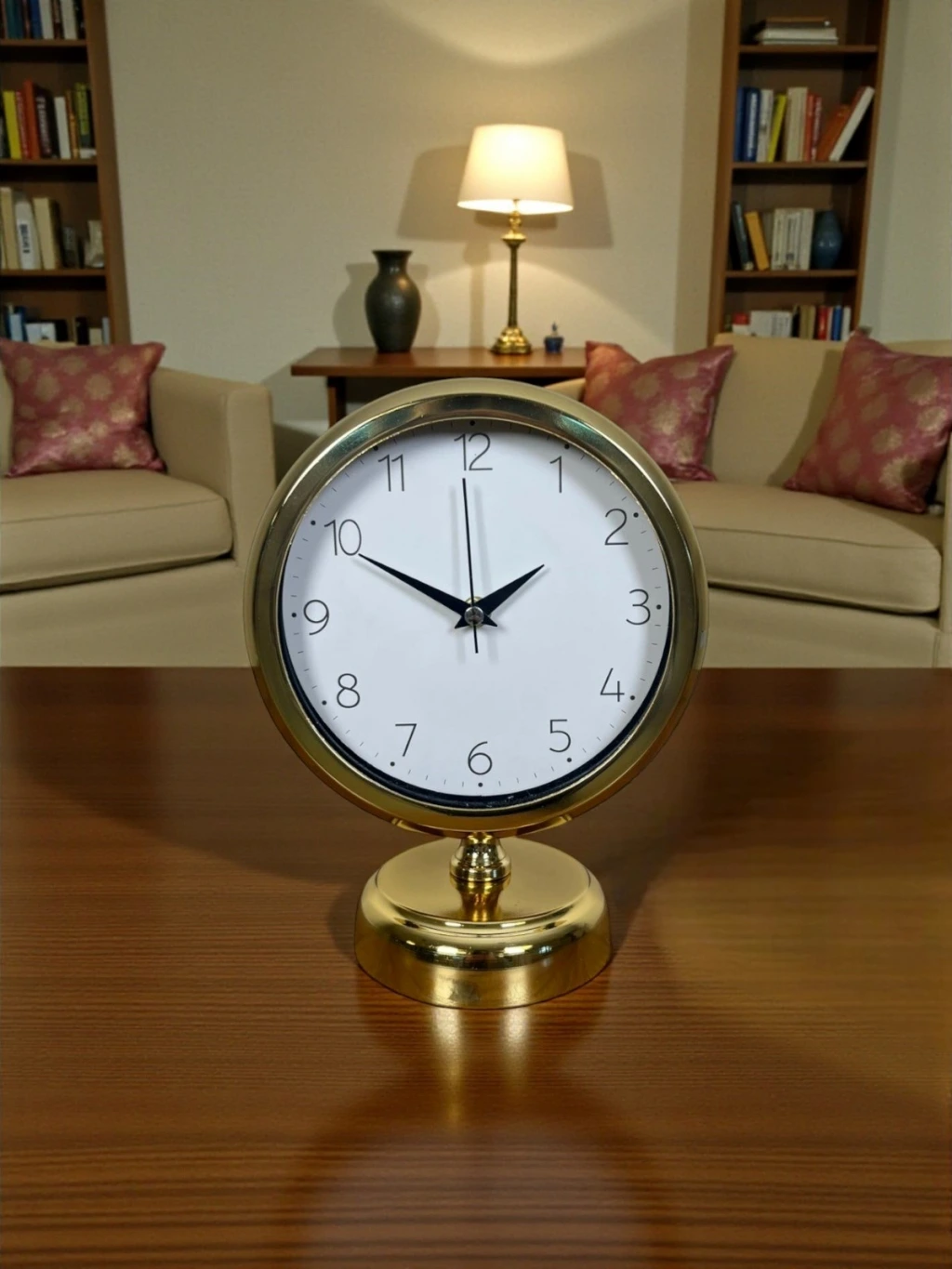Dekorasyonda küçük ama etkisi büyük dokunuşlar vardır… Bu gold masa saati, bulunduğu ortamda hemen fark edilen lüks ve düzenli bir görünüm oluşturur. Sade beyaz kadranı, net okunabilir rakamları ve gold çerçevesiyle hem modern hem de klasik dekorasyonlara rahatça uyum sağlar. Çalışma masasında profesyonel bir hava, konsol üzerinde ise tamamlayıcı bir şıklık sunar.